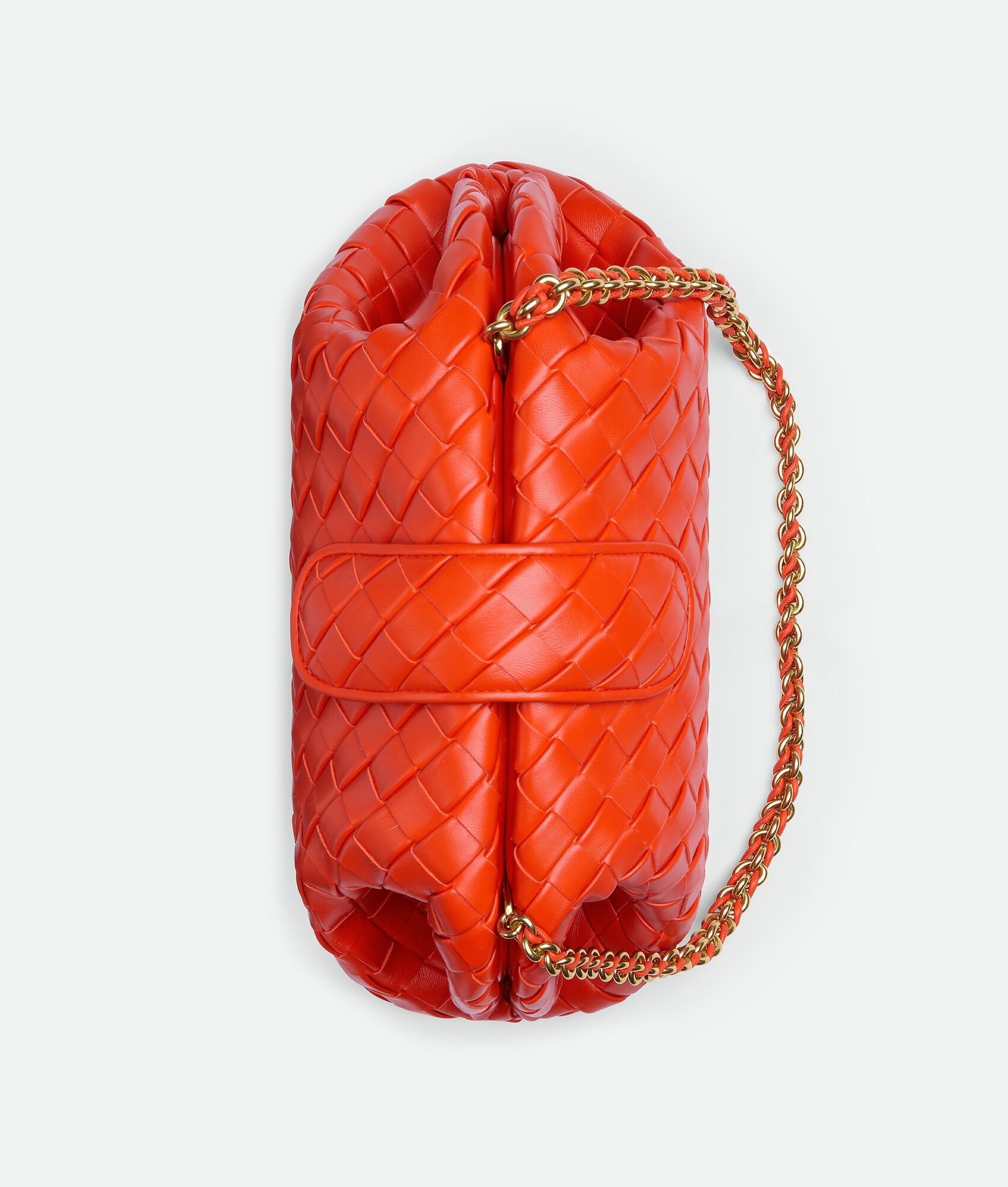 • Padded Intrecciato leather teen clutch with leather braided metal chain