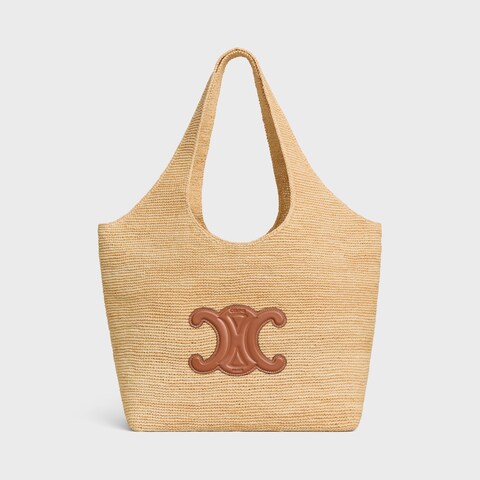 CELINE CELINE CLASSIC PANIER SMALL BRAIDED TRIOMPHE IN RAFFIA AND CALFSKIN