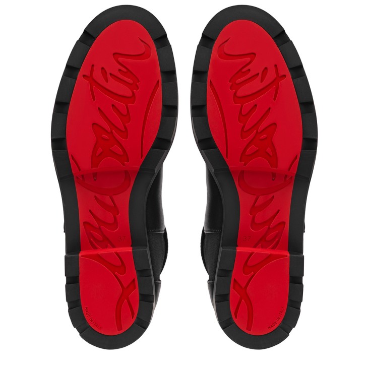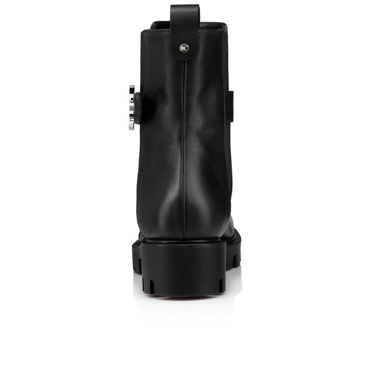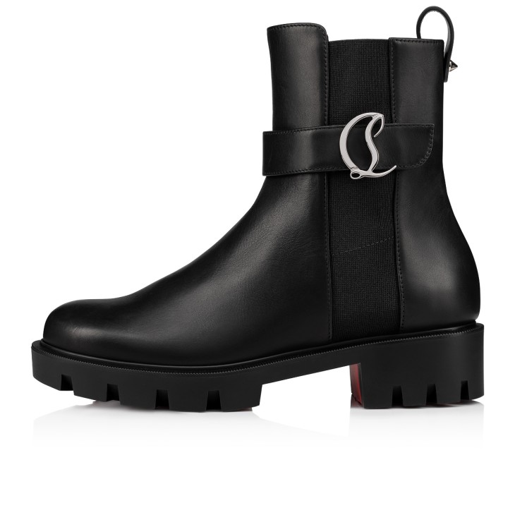 The CL Chelsea Booty Lug is a contemporary boot with urban lines. It is crafted entirely in ingrassato black calf leather and has an elasticated panel at the sides. This sleek boot features a lug sole and a tongue adorned with a silver metal CL monogram. An iconic style, the heel tab showcases a Maison Christian Louboutin signature spike.