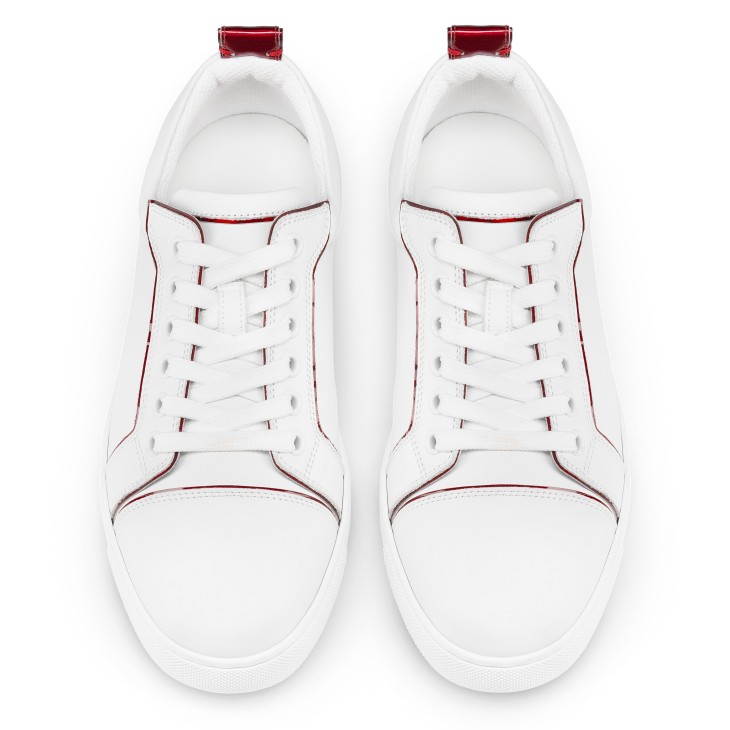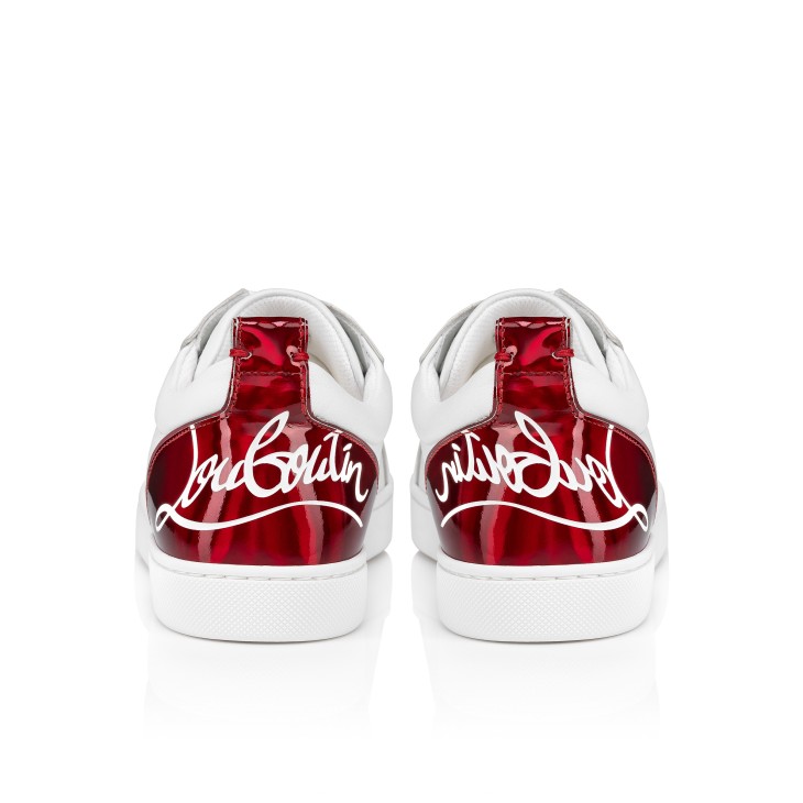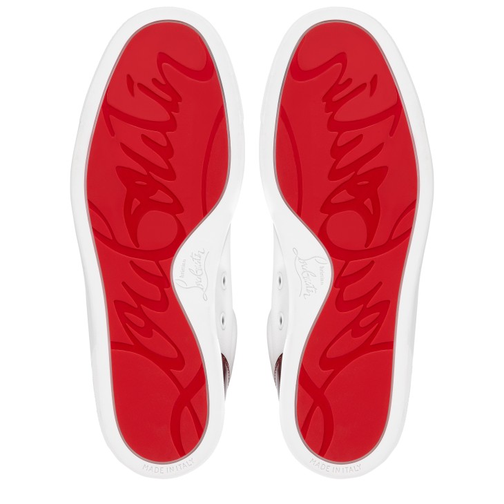 The Fun Louise Junior low-top sneaker sits on a white rubber sole with contrasting nude calf leather lining. With its sporty lines, it combines white calf leather, and Psychic Loubi red calf leather with iridescent hues. This model showcases Maison Christian Louboutin’s exemplary creativity, featuring the creator’s signature on the back and delicate topstitching.