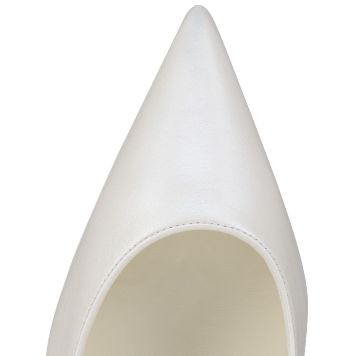 The tapered silhouette of the Miss Z pump offers sophistication. Set on an 80 mm stiletto heel that reveals the iconic red Loubi sole, this model from the Maison Christian Louboutin bridal collection is crafted from white pearlescent nappa leather. Revealing the foot with its elegant vamp, this model features a new ‘Everlasting Red Sole’ thanks to an innovative coating technique that ensures resistance and lasting vibrancy for our signature Louboutin red.