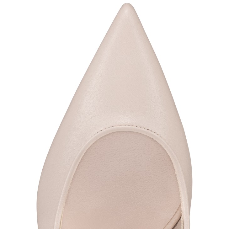 The Sporty Kate Sling pump crafted from nappa leather in Leche beige and featuring a delicate 55 mm kitten heel is the embodiment of elegance. The closed toe contrasts with the open slingback and fine stitching adorns each edge. Detailed with the iconic Maison Christian Louboutin initials and embellished with a daring Loubi red sole, this slingback makes a statement.