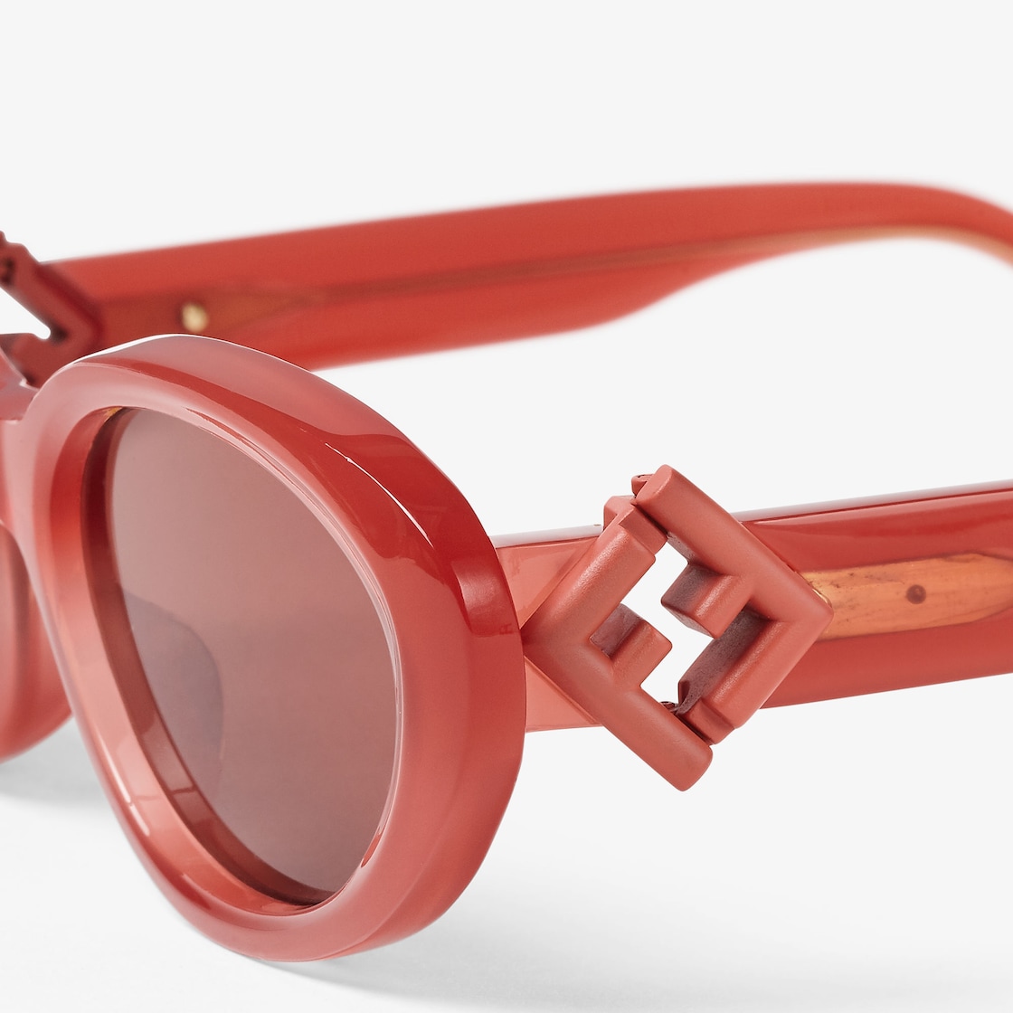 Oval-shaped FF Diamonds eyeglasses in opalescent red acetate. Temples with functional FF Diamonds hinges in matching satin-finish metal. Red lenses.