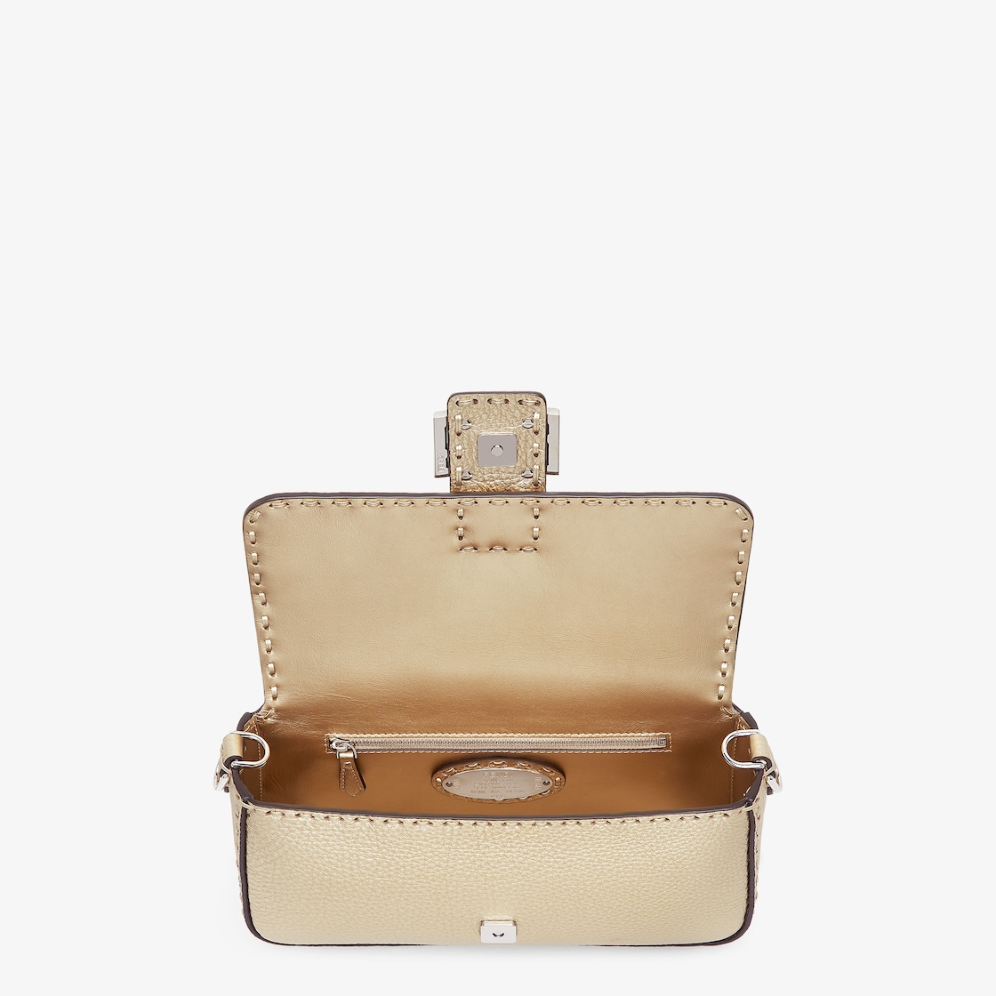 Medium, iconic Baguette bag made with 612 tone-on-tone macro topstitches, an emblem of the iconic Selleria workmanship handed down through generations of Fendi artisans since 1925.