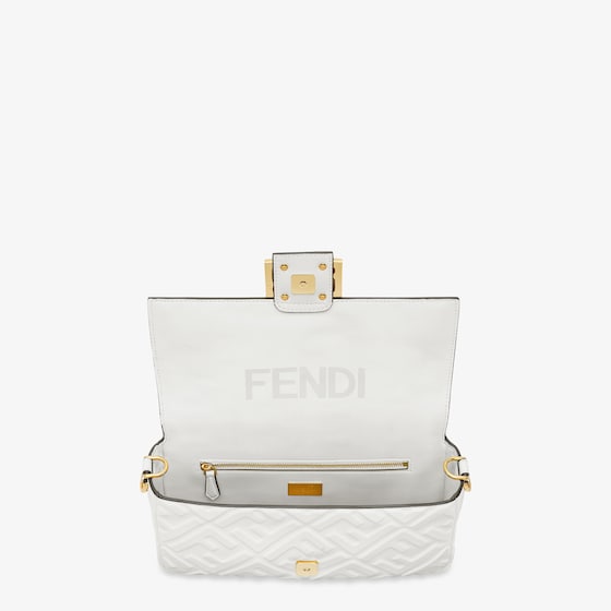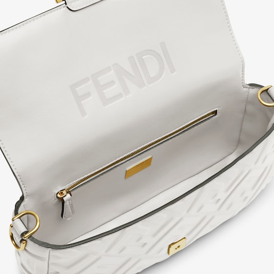 Made of a particularly soft and hard-wearing, white calfskin with a 3D-effect, embossed iconic FF motif. Decorated with an FF clasp.
