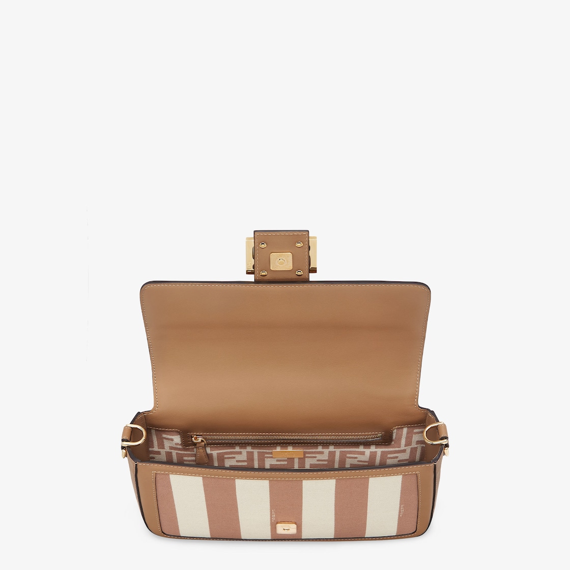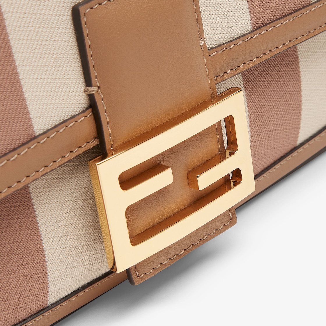 Made of beige jacquard fabric with a Pequin striped motif. Trimmed in beige calfskin and embellished with an FF clasp.