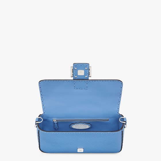 Made of light blue Cuoio Romano leather, calfskin with a characteristic natural grain produced with a metal-free tanning process.
