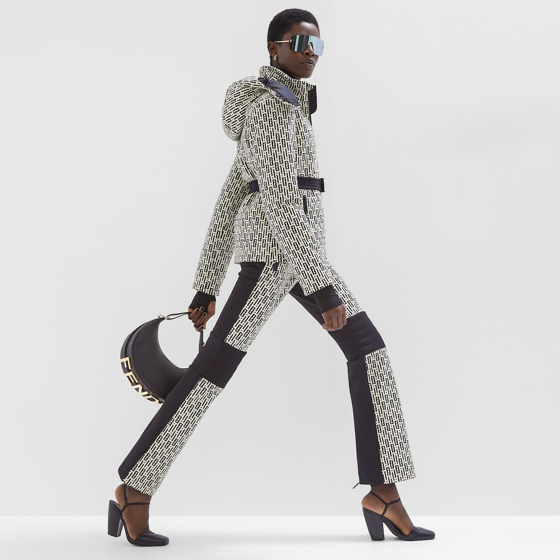 Zip closure with fabric-lined internal compartment, gold-finish metalware.