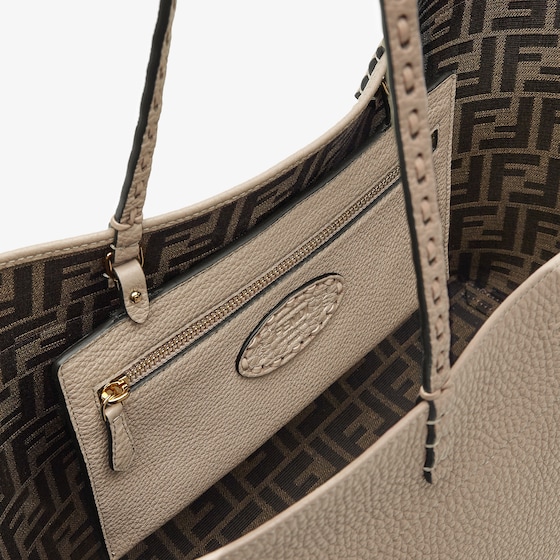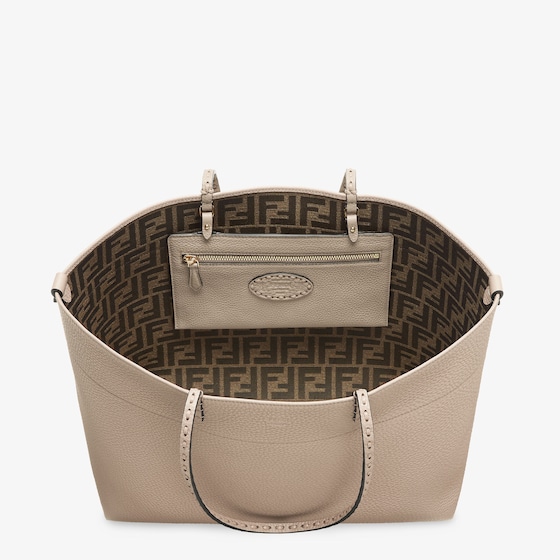 It can be carried by hand or on the shoulder thanks to the Cuoio Romano leather handles finished with hand-stitched macro topstitching, an emblem of the iconic Selleria workmanship handed down through generations of Fendi artisans since 1925.