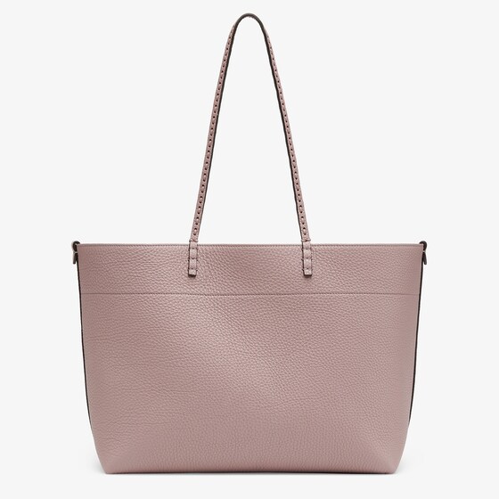 Made of mauve pink Cuoio Romano leather, calfskin with a characteristic natural grain, produced with a metal-free tanning process.