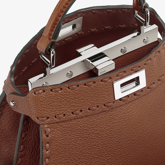 Iconic Peekaboo ISeeU bag in an ideal compact size, made with 306 hand-sewn tone-on-tone macro topstitches, an emblem of the iconic Selleria workmanship.