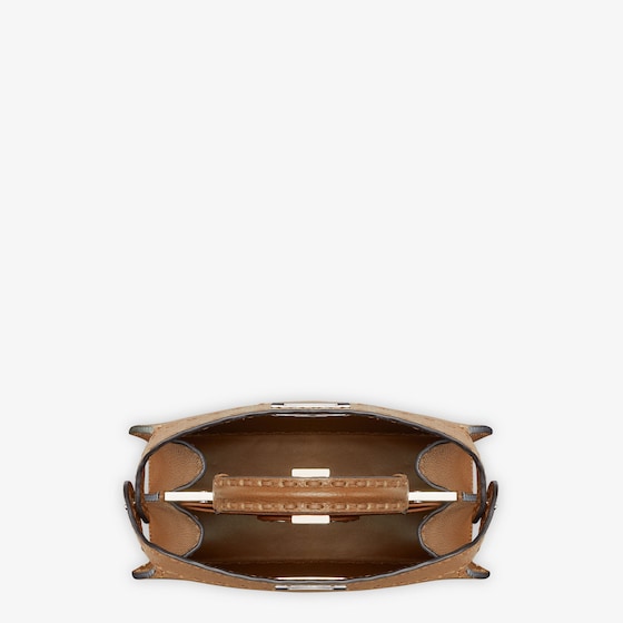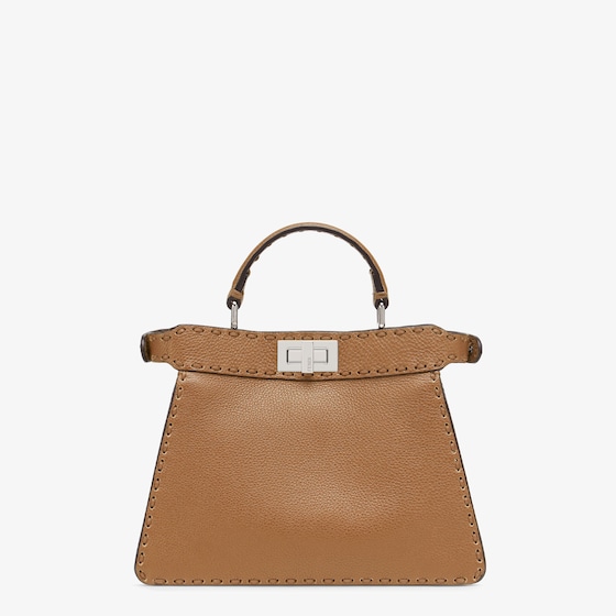 Small iconic Peekaboo ISeeU bag made with 556 tone on tone hand-sewn macro topstitches, an emblem of the iconic Selleria workmanship handed down through generations of Fendi artisans since 1925.