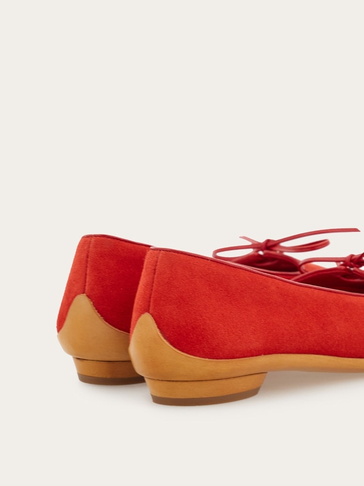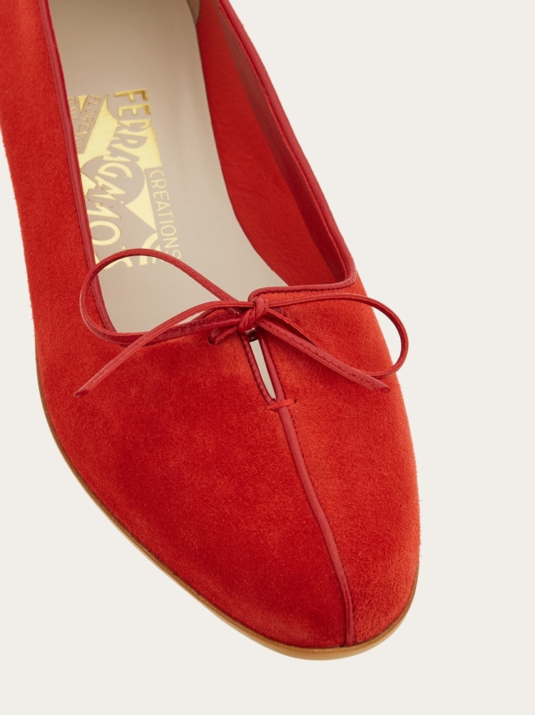 Originally envisioned by Salvatore Ferragamo in 1958, this suede ballet flat model was created for the legendary actress Marilyn Monroe. Adorned with a delicate tie and featuring a distinctive shell-shaped sole, the ballet flat is a combination of vintage charm and timeless sophistication.