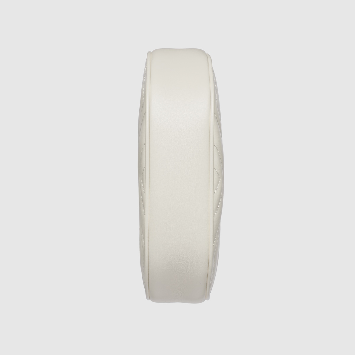 With a crescent silhouette and textured white leather, this mini bag has a defined retro feel. Each collection is a journey through different decades and eras, combining vintage elements with archival codes or contemporary details to create new designs that exist outside of space and time. The petite accessory reflects this fascination with the past, a concept that runs throughout the world of GG Marmont.