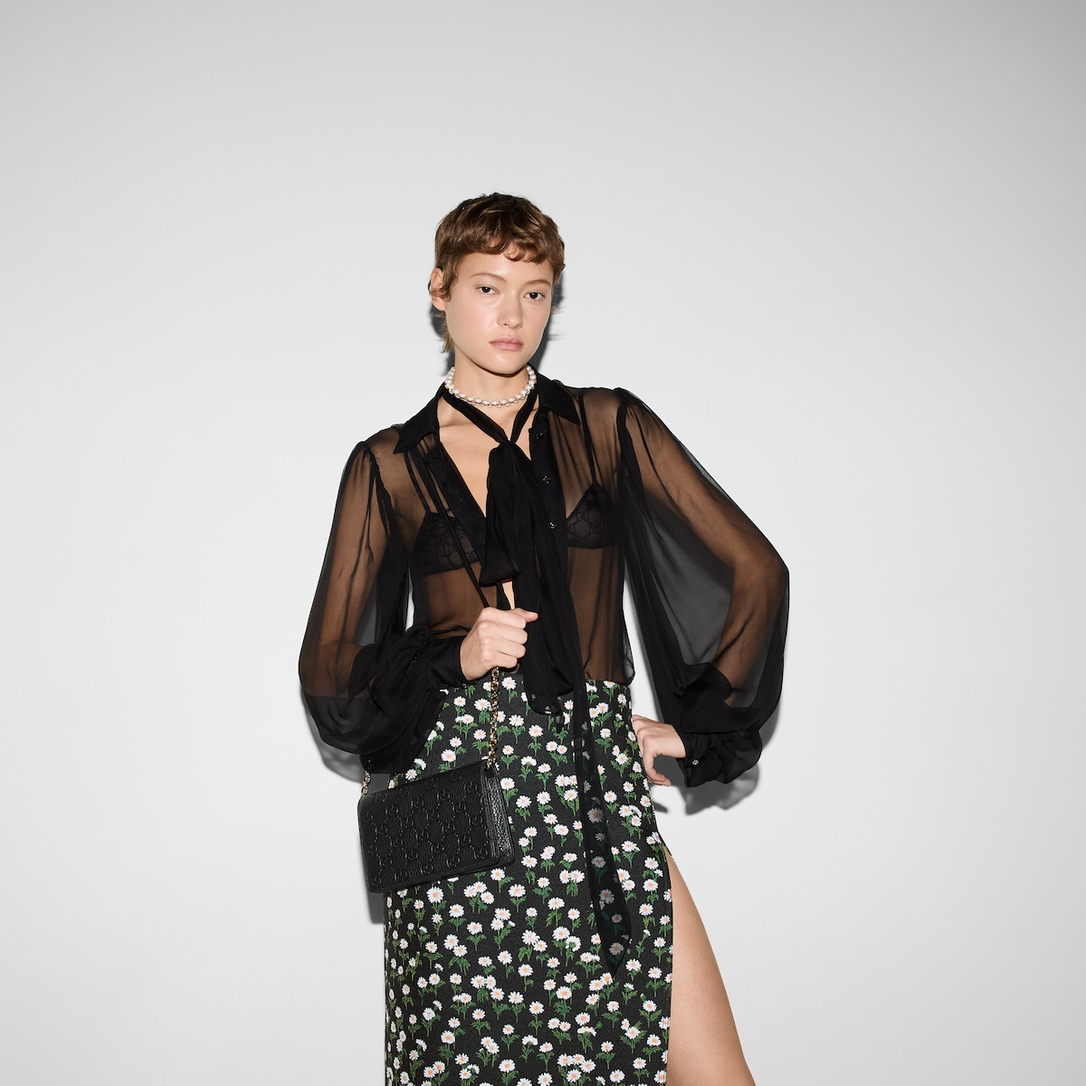 The GG Emblem collection reinterprets signature motifs through creativity and innovative functions , and is envisioned to be cherished for years to come. Introduced in the latest line of small accessories, this super mini bag is crafted from emblematic GG grainy leather. The design features an inside zip pocket and an adjustable leather and chain shoulder strap.