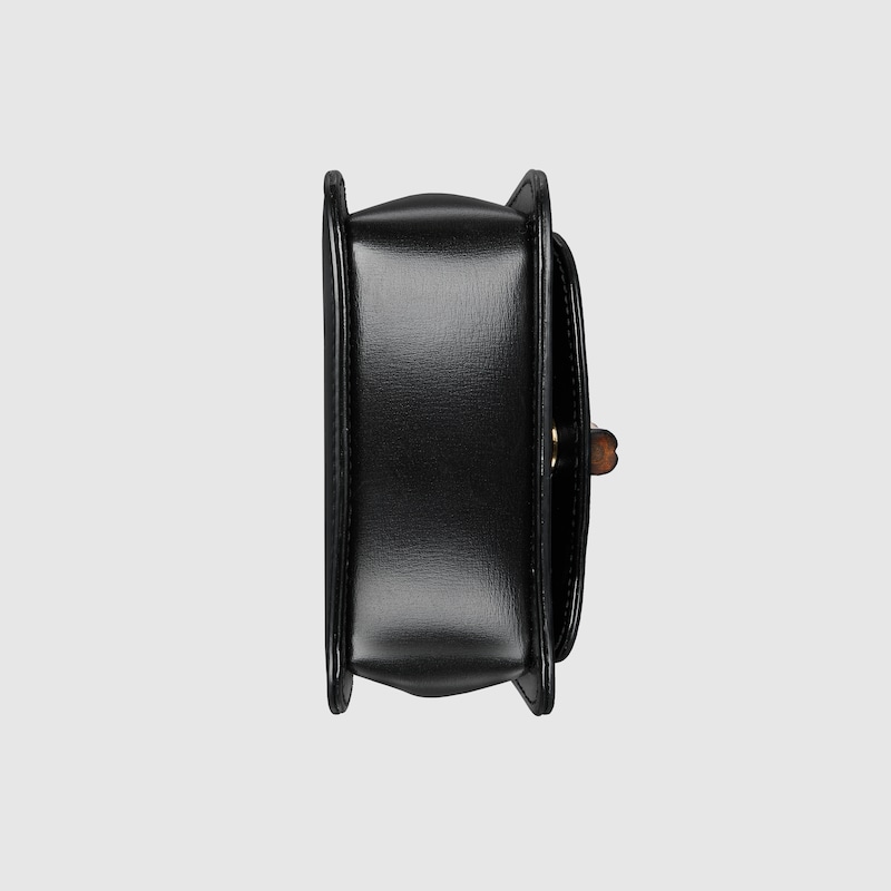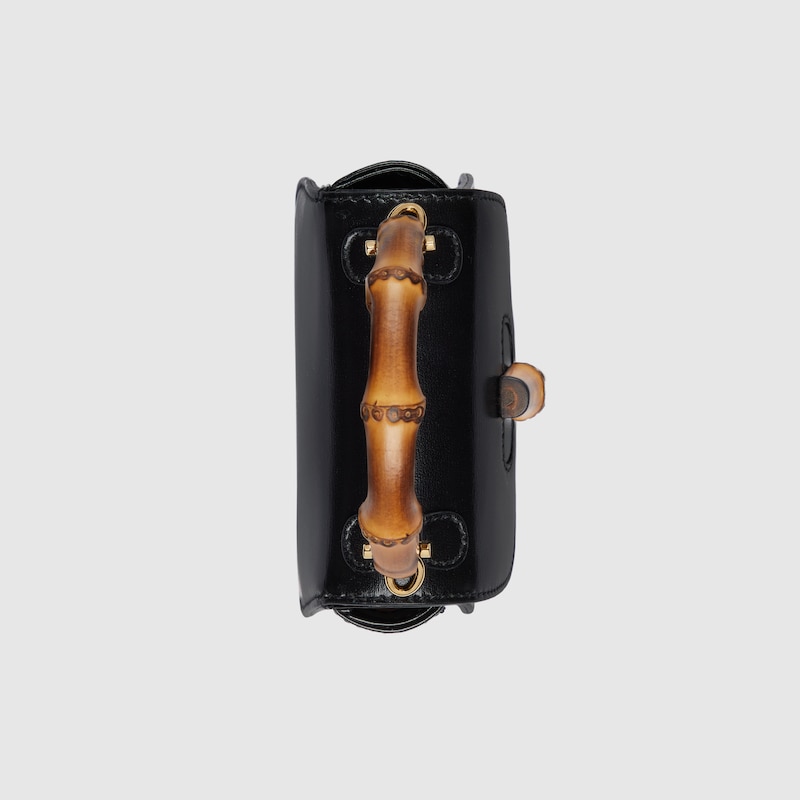 Signature Gucci designs go miniature for Fall Winter 2023. Featuring the same unmistakable hardware and finishes, this black leather Gucci Bamboo 1947 is a playful variation of the original dimensions. With multiple ways to style it, the design is seamlessly integrated into everyday wear.