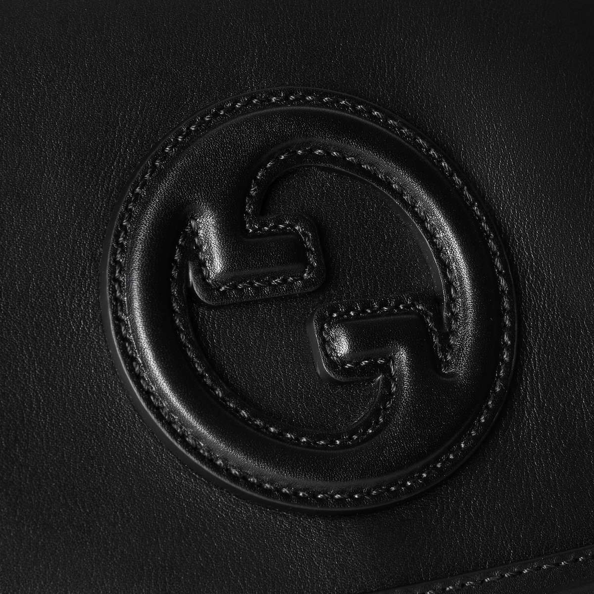 The new Gucci Blondie bag, whose distinctive logo first appeared in the House’s collections in the early 1970s, weaves together past and present in a fusion of nostalgia and modernity. This small top handle bag with a detachable and adjustable leather shoulder strap is crafted from black smooth leather.
