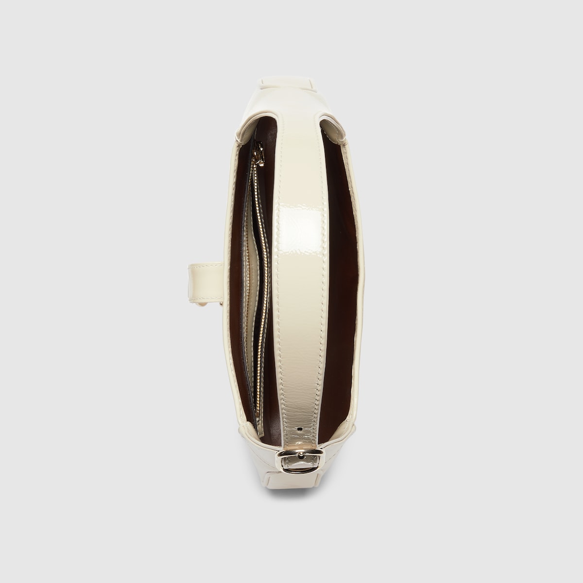 The new Gucci Jackie is crafted from fine leather which highlights the craftsmanship, crescent shape, and sleek silhouette of the House’s iconic shoulder bag. Light gold-toned hook closure, leather trim, and an additional strap featuring the green and red Web gives this Gucci Jackie small shoulder bag in ivory leather further styling options.