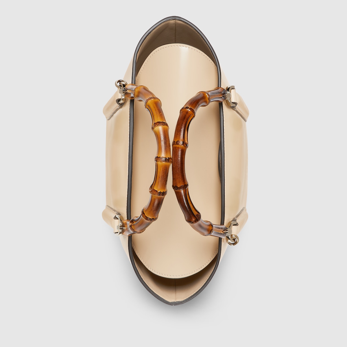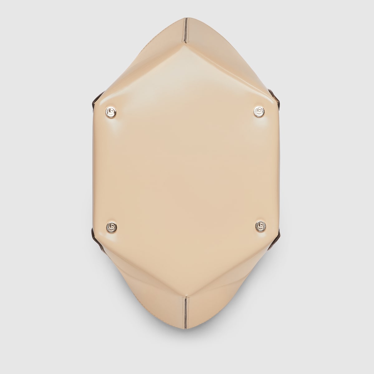 Introducing a bamboo top handle bag, this style from the women’s Fall Winter 2024 runway blends the House’s expert craftsmanship with its iconic motif. The basket-shaped bag reveals a hexagonal base, highlighting its artisanal construction. The mini size in light beige is complete with a detachable shoulder strap.