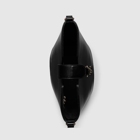 This mini bucket shoulder bag is crafted in black leather. This accessory is a perfect blend of functionality and modernity thanks to the design with hook closure and a Web shoulder strap.