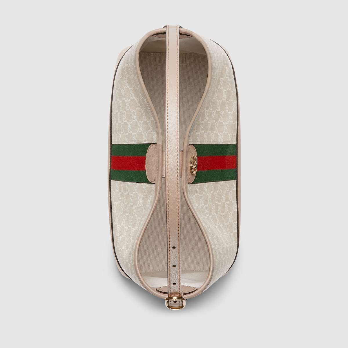 The Ophidia is reinvented in new and unexpected ways in this medium-sized piece, which blends the open bucket design and shoulder bag style. It is crafted in the House’s signature GG Supreme canvas in the color combination of beige and white.