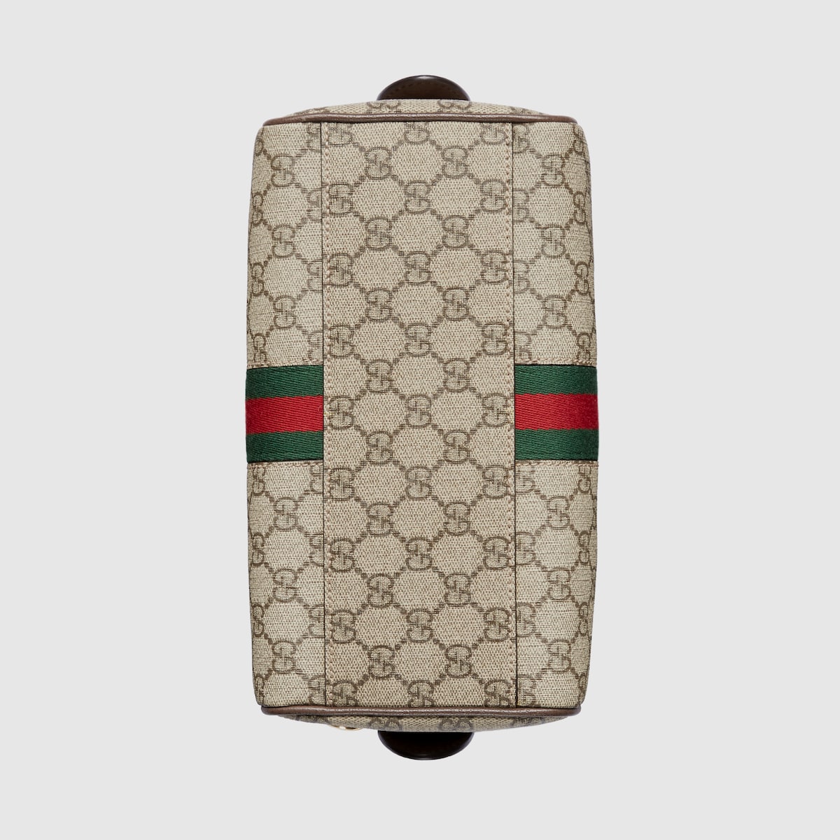 A signature fabric, GG Supreme canvas has become a staple throughout the Gucci universe. Reinterpreted through the Gucci lens, the material appears throughout the latest collections. Here, this small top handle bag is crafted with the all-over monogram motif. Completing the logo feel, the signature Double G hardware completes the style.