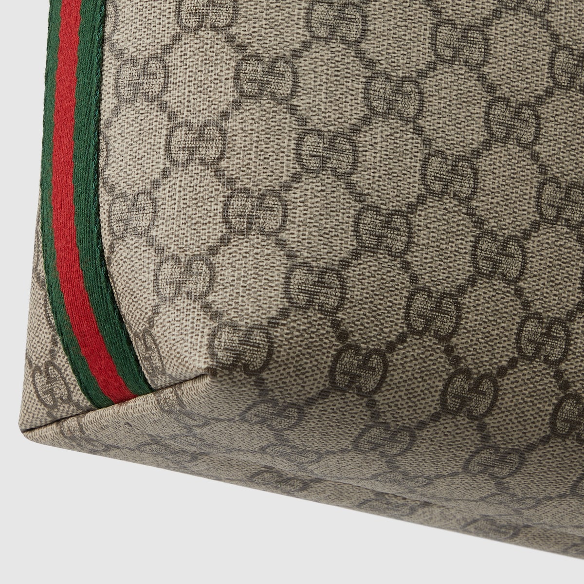 The world of Ophidia continues to evolve with new iterations for the Pre-Fall collection. This super mini shoulder bag is made of beige and ebony GG Supreme canvas and has a semi-detachable shoulder strap. The House iconic Web stripe completes the piece along the sides.