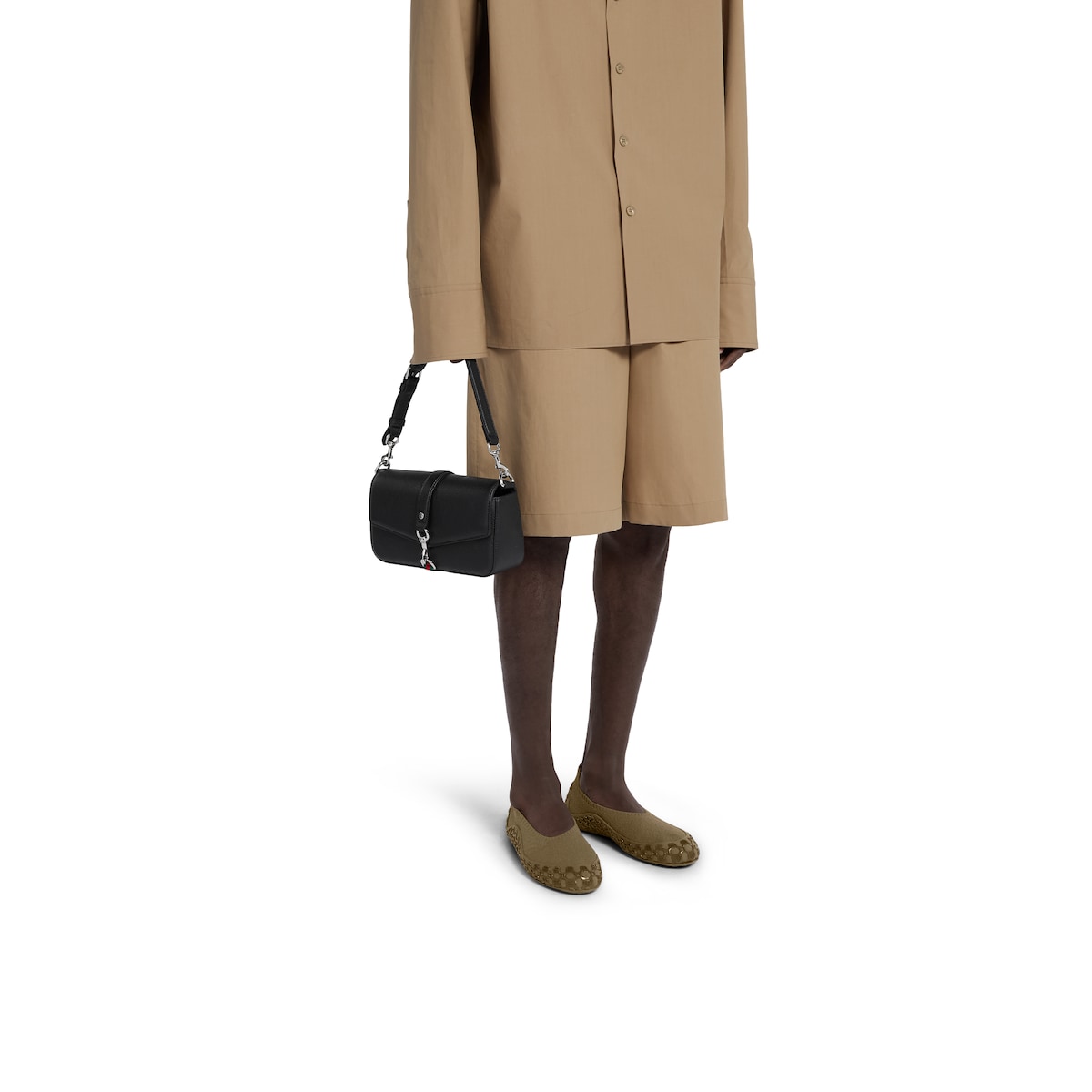 In the Spring Summer 2025 collection, crossbody bags in the House’s distinctive aesthetic feature a flap closure and the snap hook hardware, a new signature design of the House. This black grainy design features a Web detail alongside the signature snap hook closure.