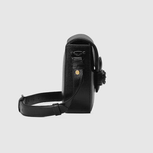 With the same lines and forms first introduced over six decades ago, the Gucci Horsebit 1955 shoulder bag unifies the original details with a modern spirit. The Horsebit, part of Gucci’s genetic code, has been established as one of the most distinctive elements among the House symbols borrowed from the equestrian world. Presented on a small flap shoulder bag, the monotone hardware is paired with black leather and the bag is enriched with two detachable shoulder straps, one is crafted in emblematic green and red Web the other is in leather.