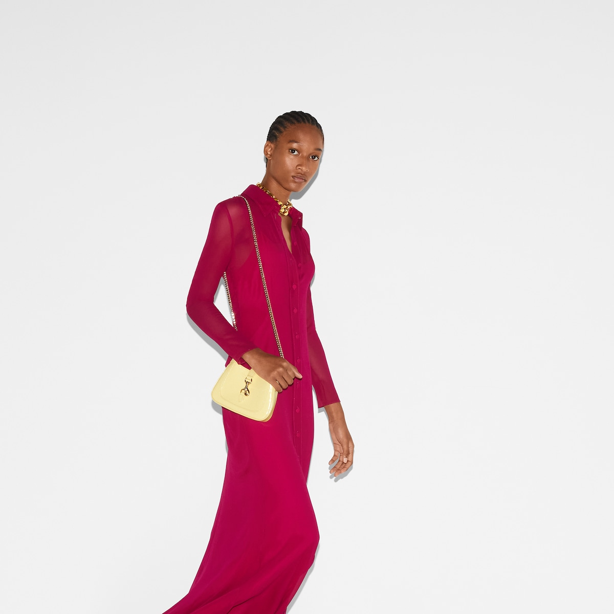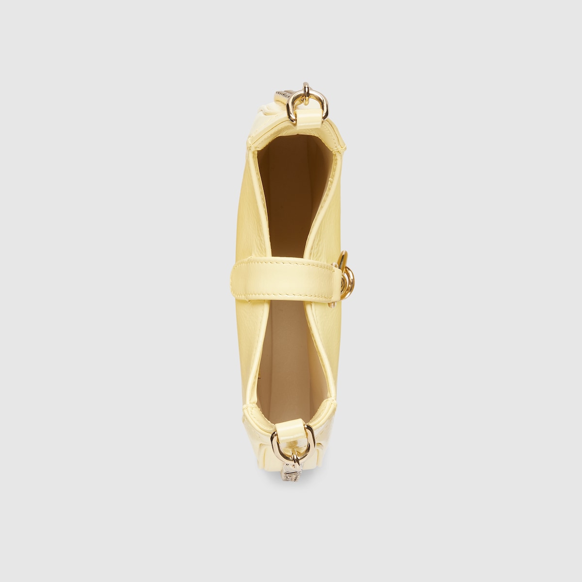 Inspired by the summer spirit and beach clubs on the Italian coast, this item is part of Gucci Lido. The Jackie Notte embodies the self-confidence of the iconic Jackie line, with a new silhouette and subtle details that make it perfect for day to night wear. Light yellow patent leather, a hook closure, and light gold-toned Gucci lettering chain strap give this mini shoulder bag a unique touch.