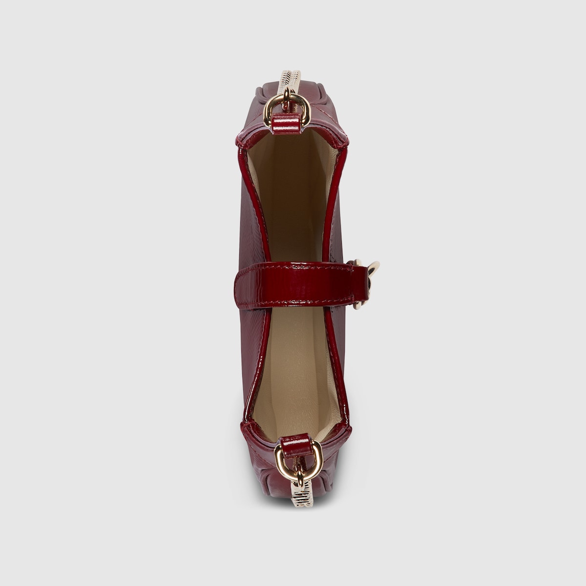 - Gucci Rosso Ancora patent leather, defined by a glossy and textured effect