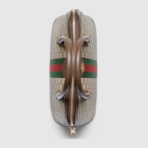 The world of Ophidia continues to evolve with new iterations for the Pre-Fall collection. This medium-sized top handle bag is made of beige and ebony GG Supreme canvas and has a detachable shoulder strap. The House iconic Web stripe and Double G hardware complete the piece.