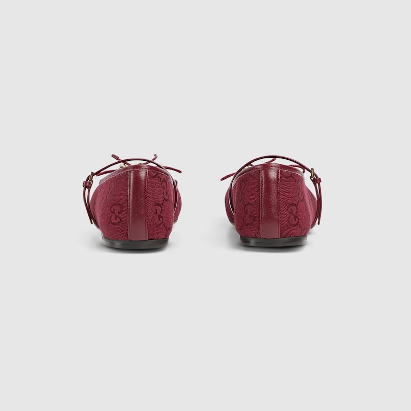 This signature Horsebit ballet flat pays homage to the original ballet shoe silhouette defined by a squared tucked toe cap and the delicate bow detail. This style is crafted in Original GG canvas and defined by a light gold-toned Horsebit. The “sacchetto” construction ensures a high level of comfort, thanks also to the soft padded insole.