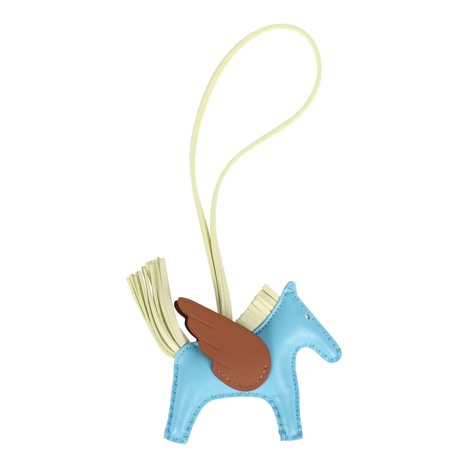 Hermes Jaune Bourgeon, Bleu Brume, Nata Pegasus Horse Rodeo Bag Charm PM Milo Lambskin