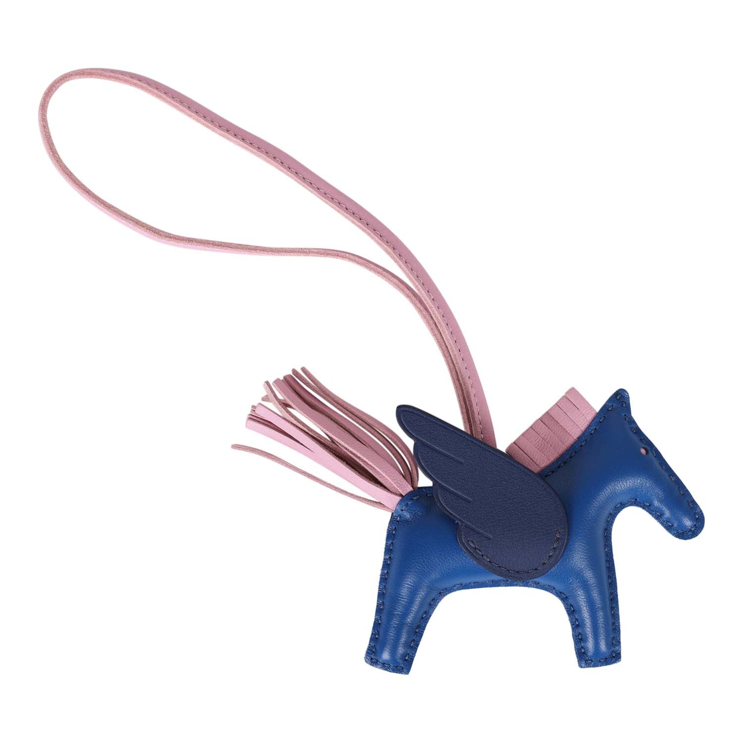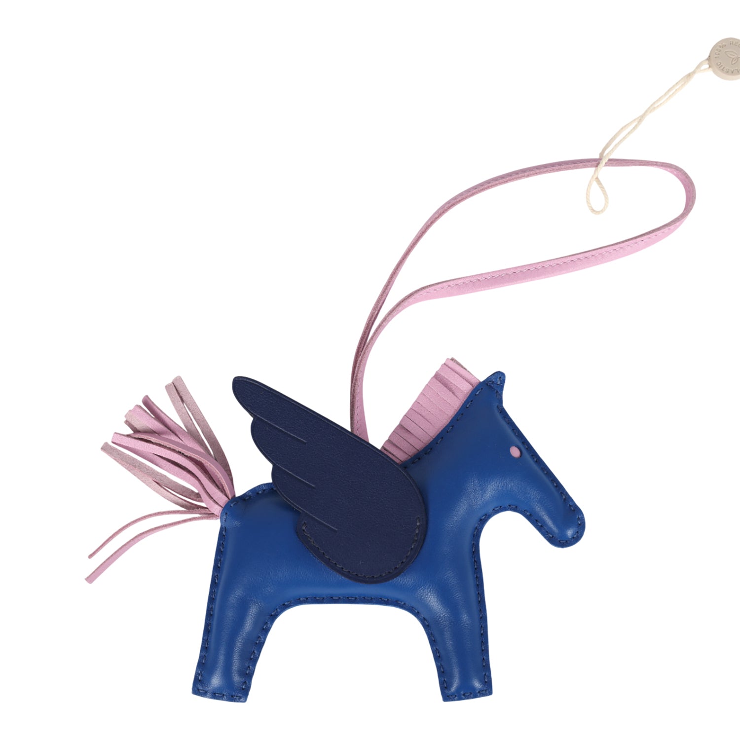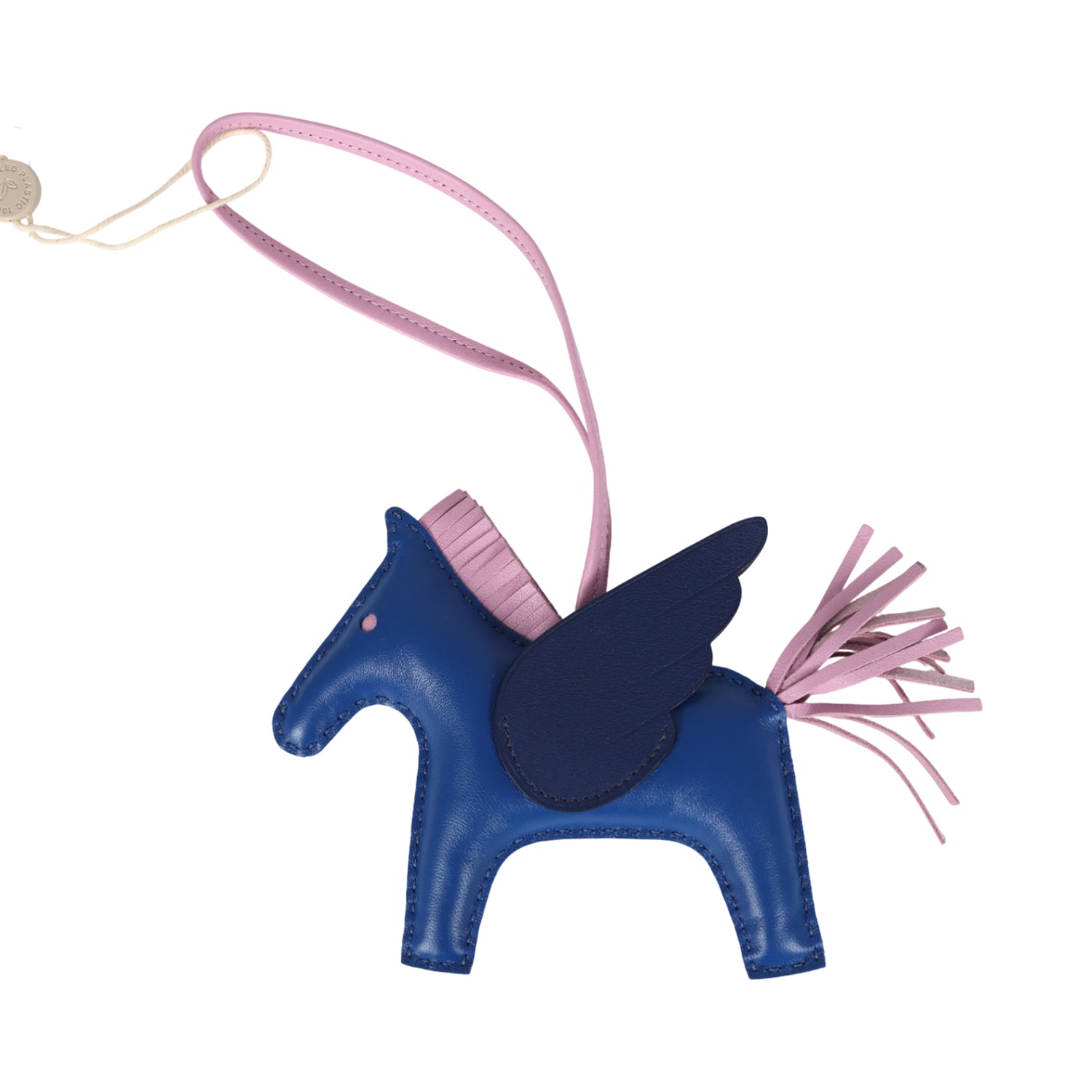 Hermes Pegase Rodeo Bag Charm MM Bleu France, Mauve Sylvestre, Bleu Saphir Milo Lambskin