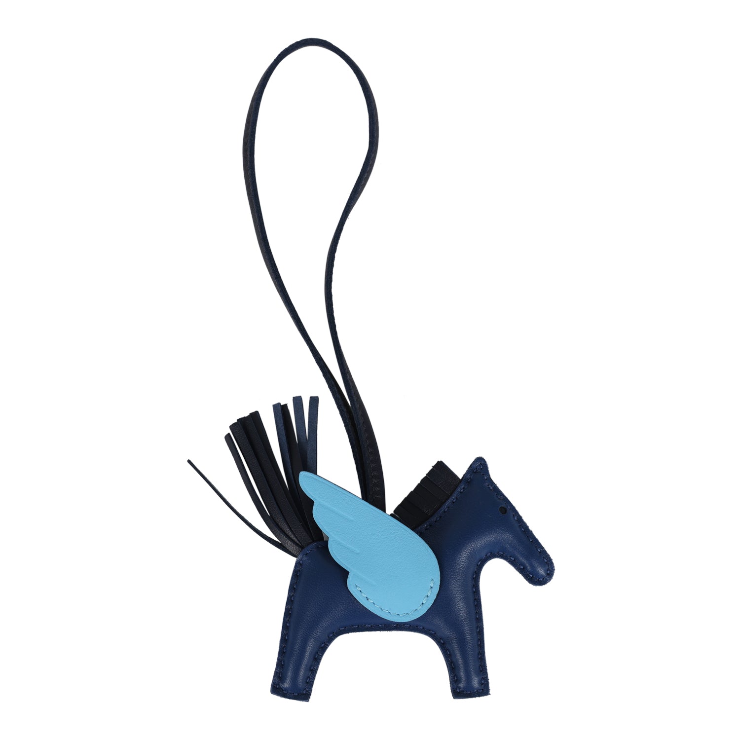 Hermes Pegase Rodeo Bag Charm PM Bleu Tie, Celeste and Bleu Nuit Milo Lambskin