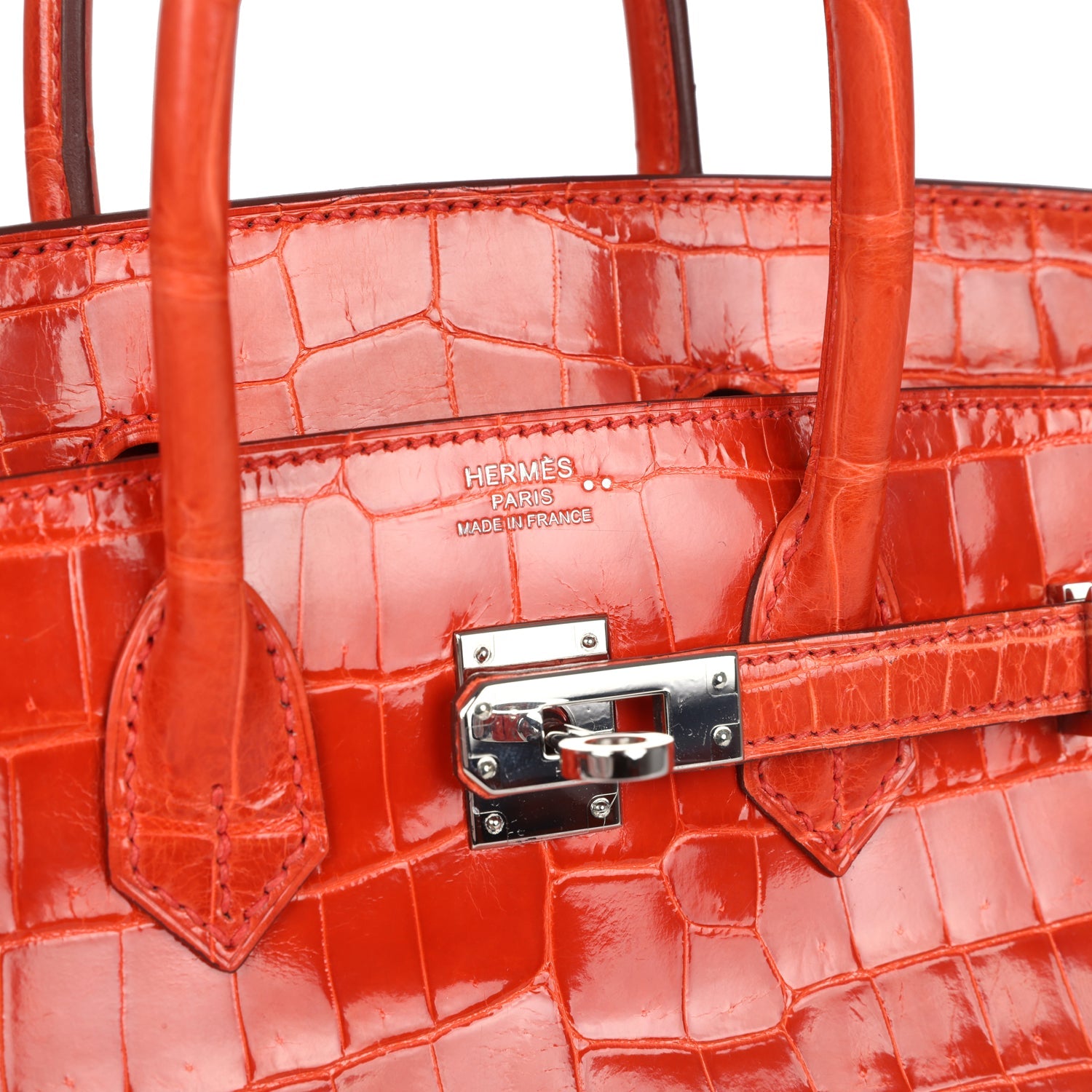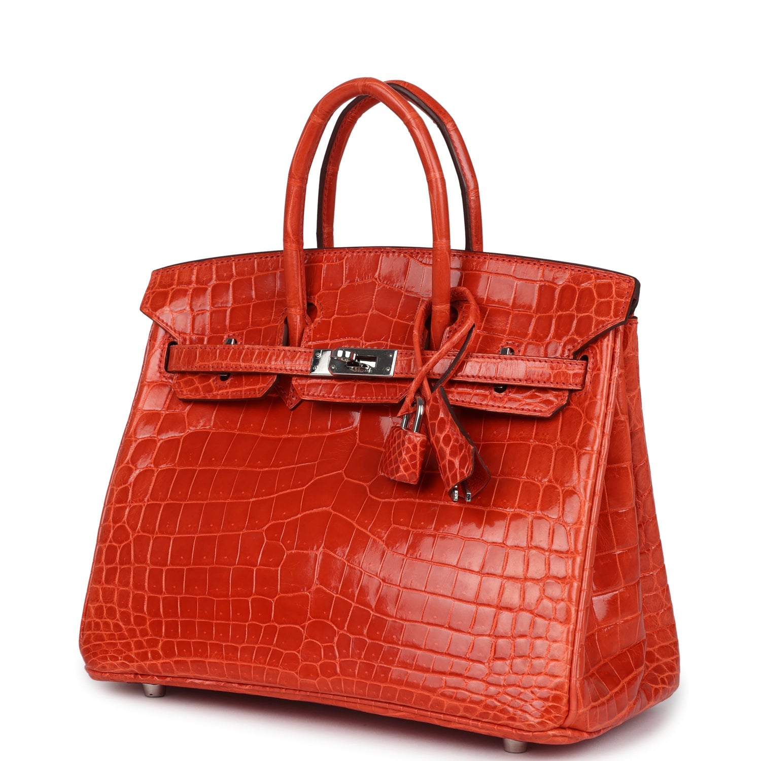 Hermes Birkin 25 Orange Poppy Shiny Niloticus Crocodile Palladium Hardware