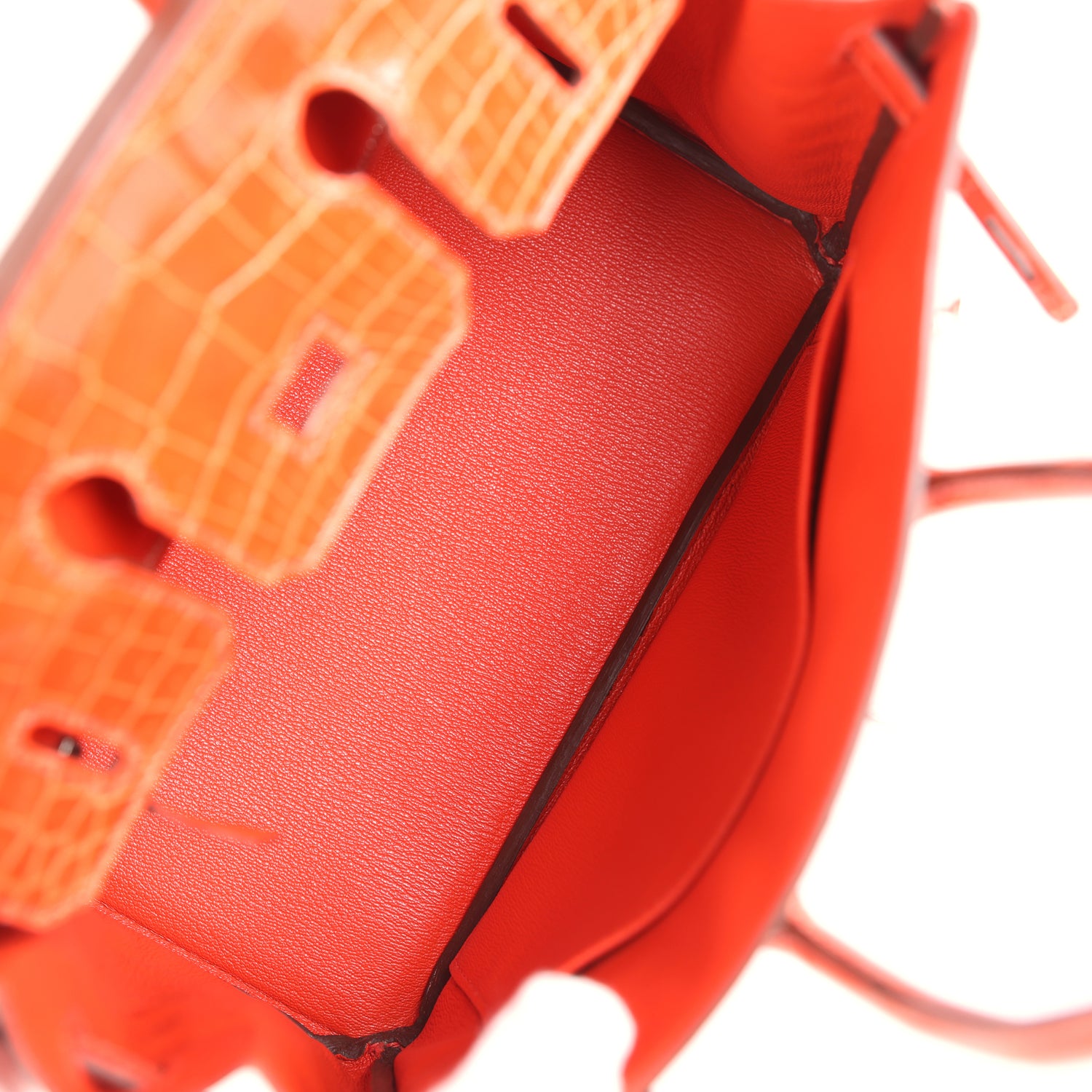 • Hermes Birkin 25 Orange Poppy Shiny Niloticus Crocodile Palladium Hardware