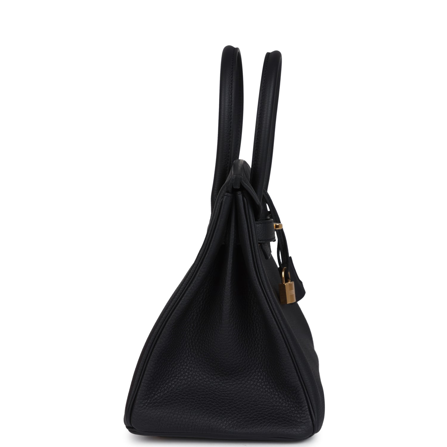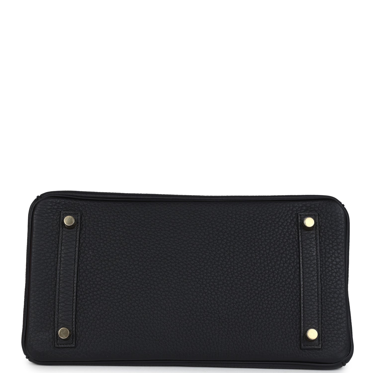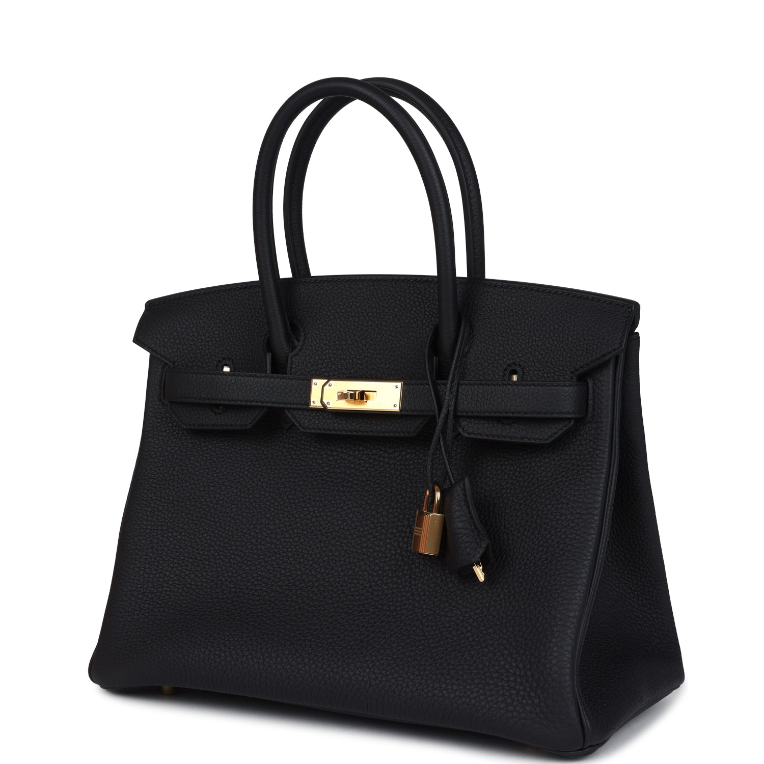 This Birkin is in Black togo leather with gold hardware and has tonal stitching, front flap, two straps with center toggle closure, clochette with lock and two keys, and double rolled handles.
