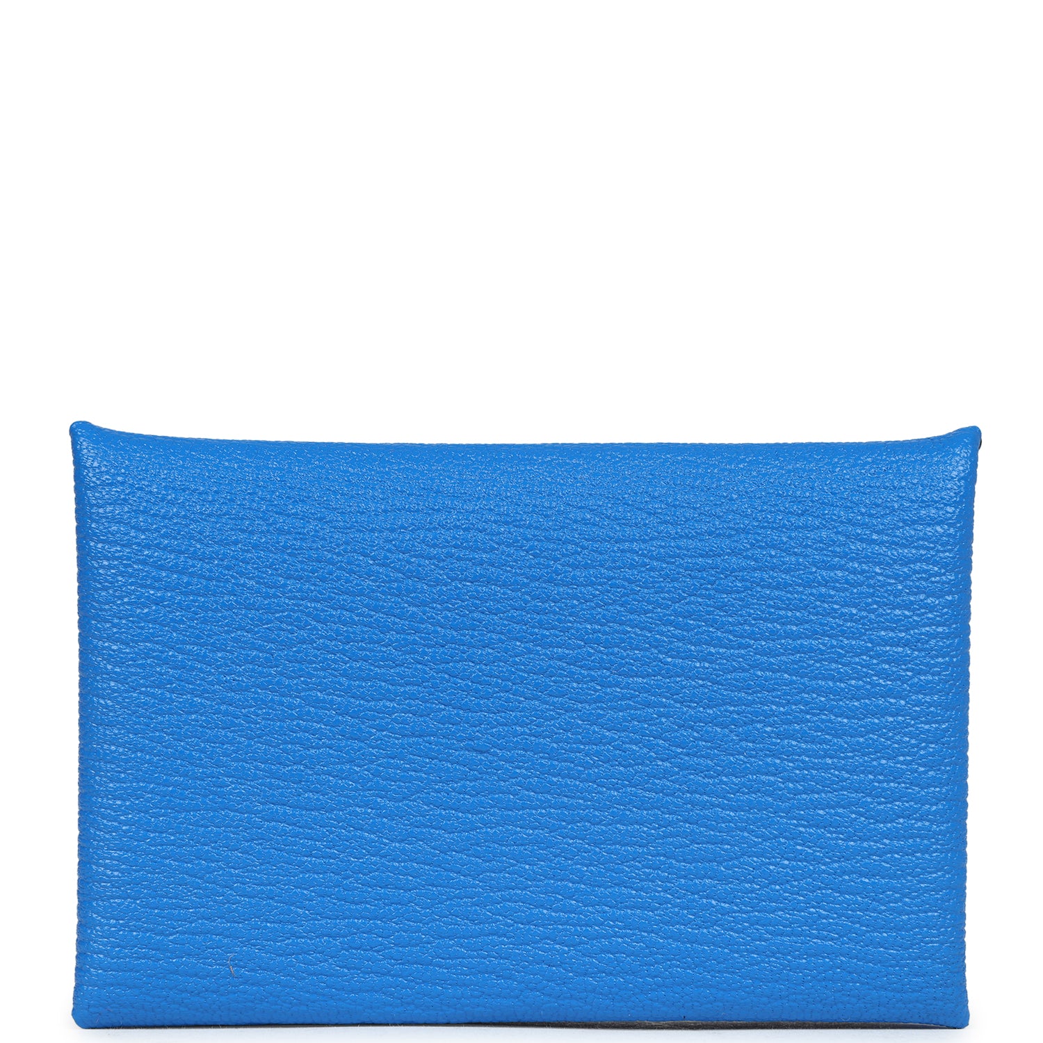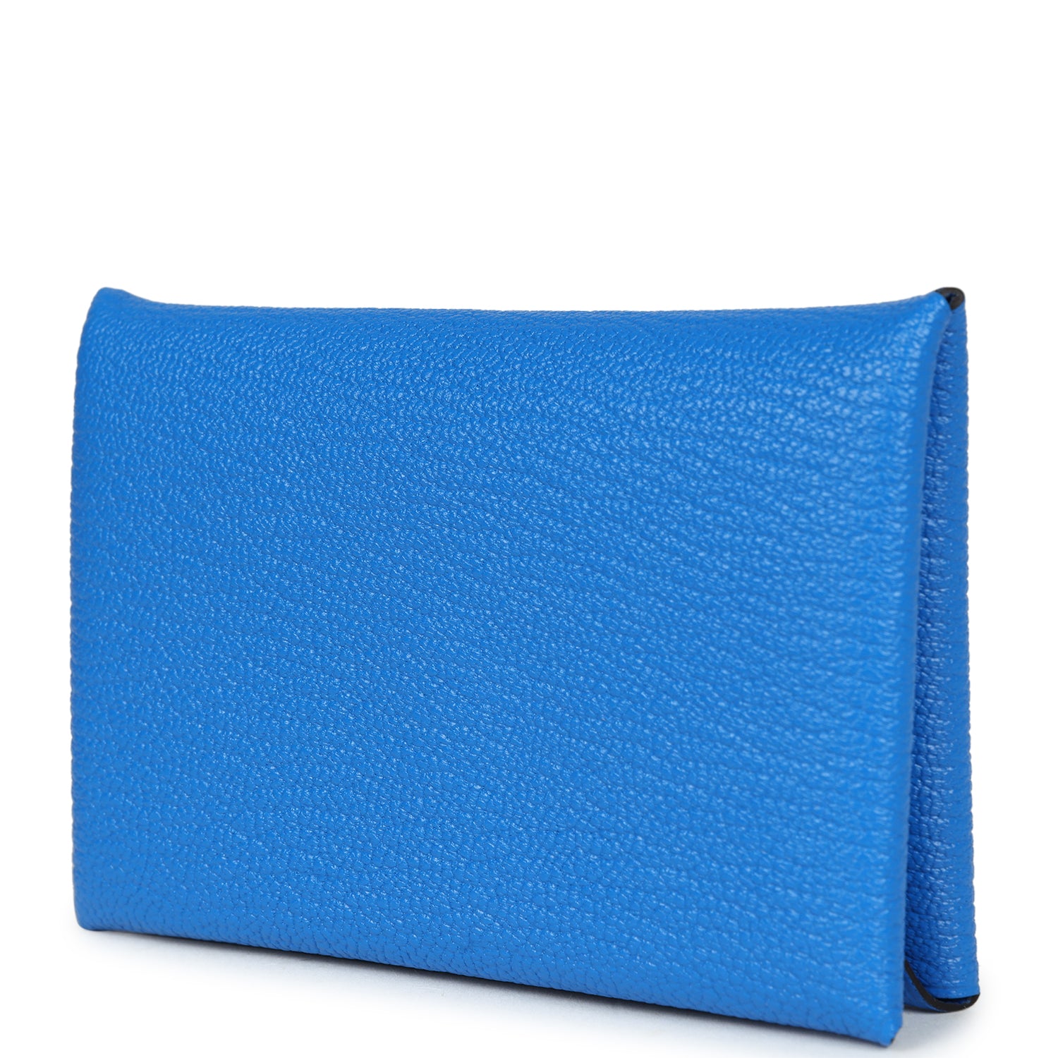 This Calvi cardholder wallet is in Bleu Hydra chevre leather with palladium hardware and a front snap closure.