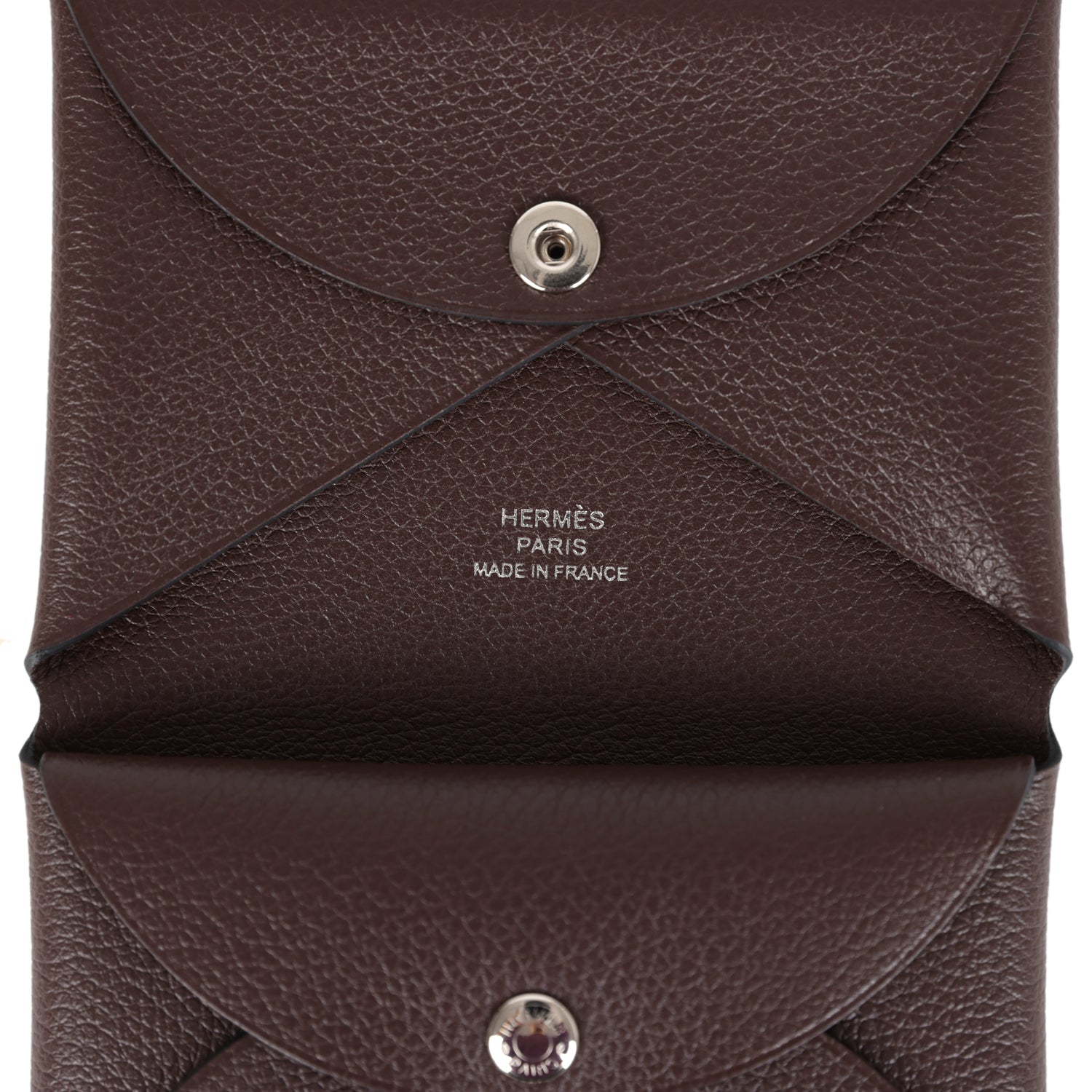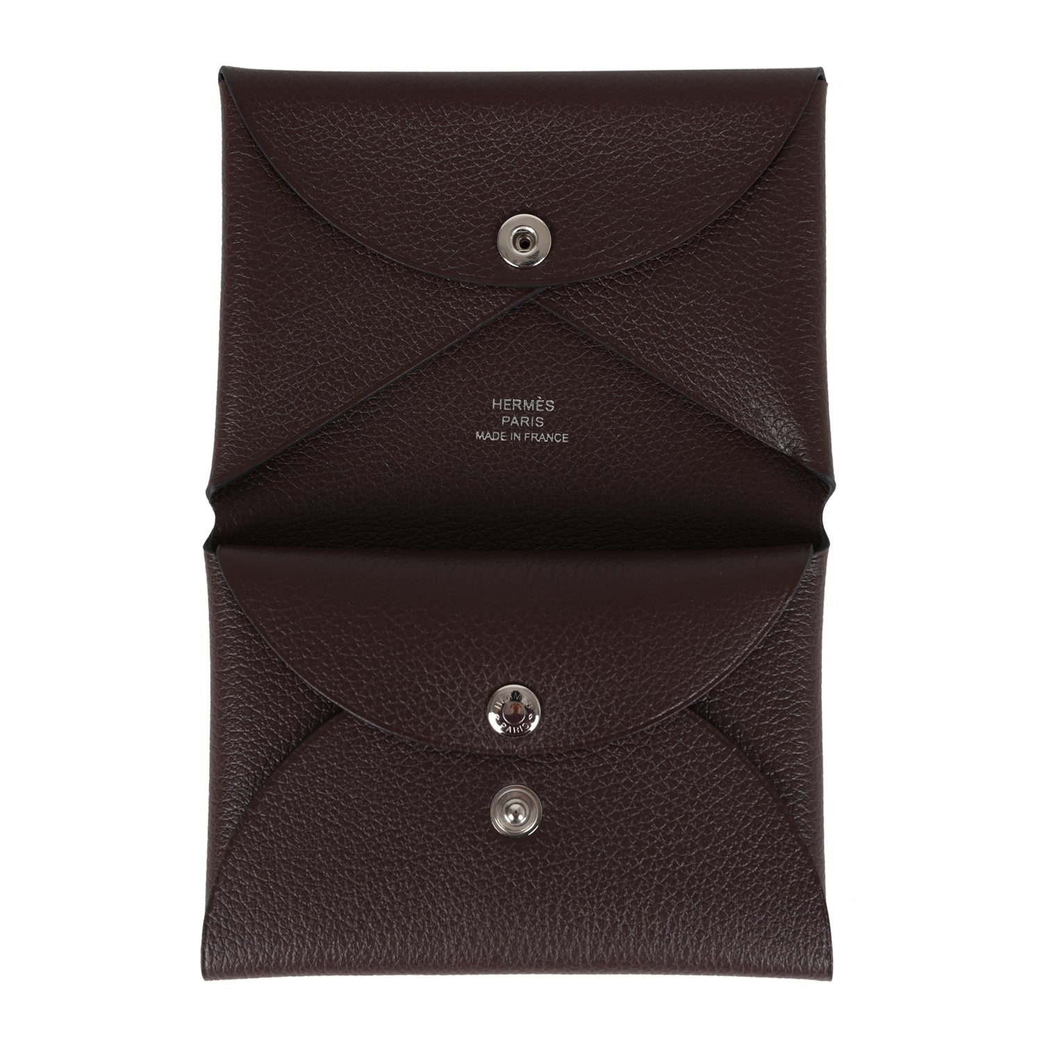 Hermes Calvi Card Holder Moka Evercolor Palladium Hardware