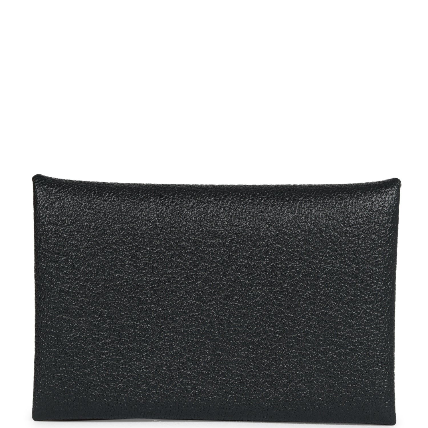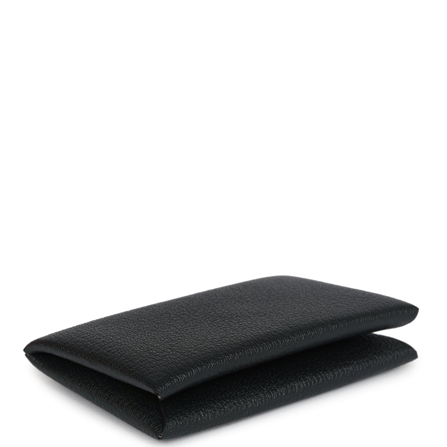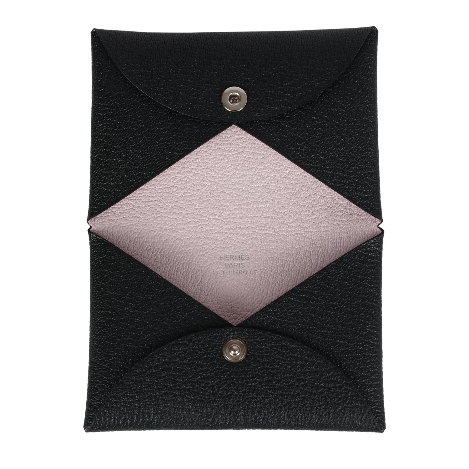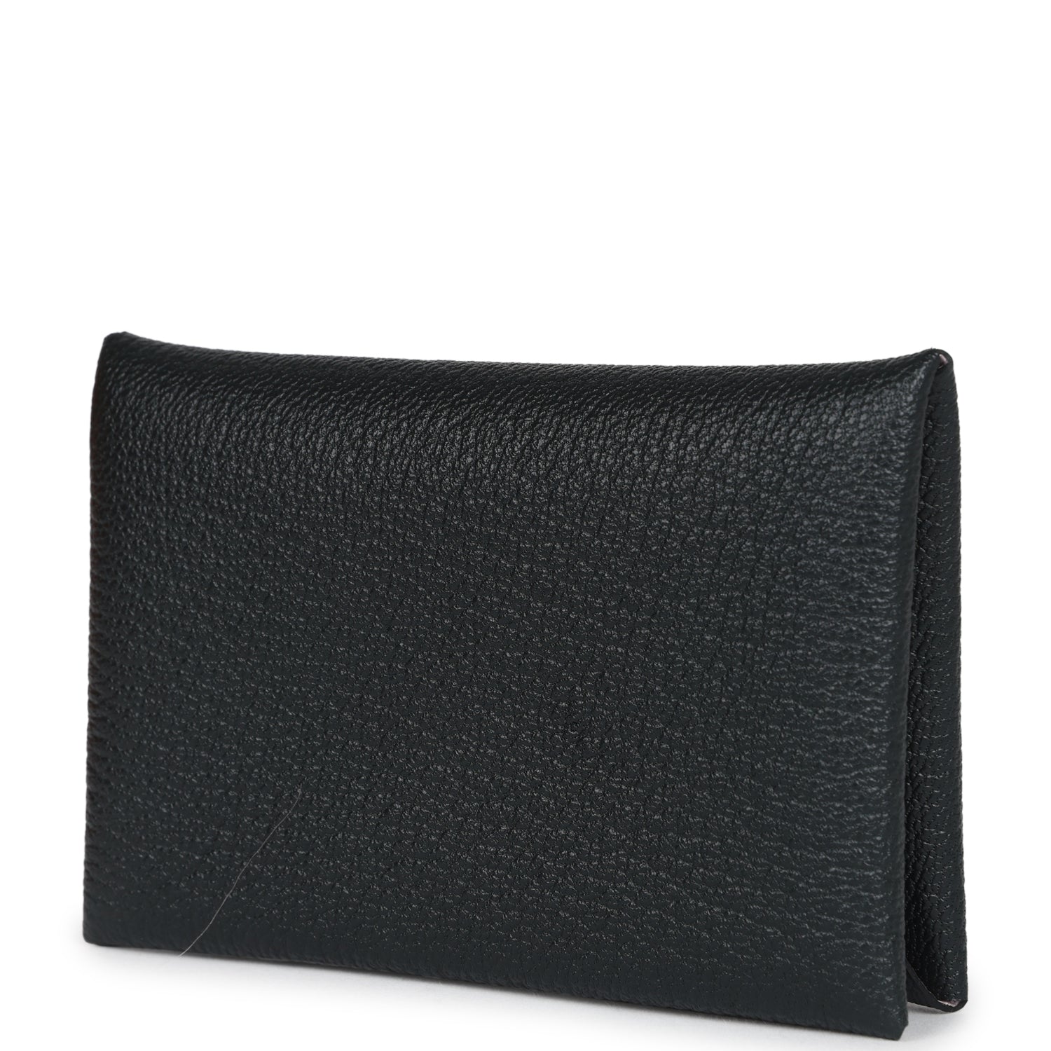This Hermes Calvi Verso cardholder wallet is in Black chevre leather with palladium hardware and a front snap closure.