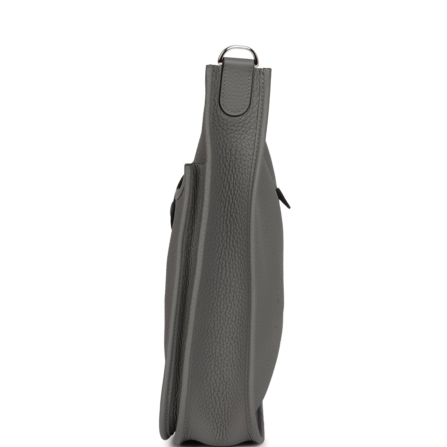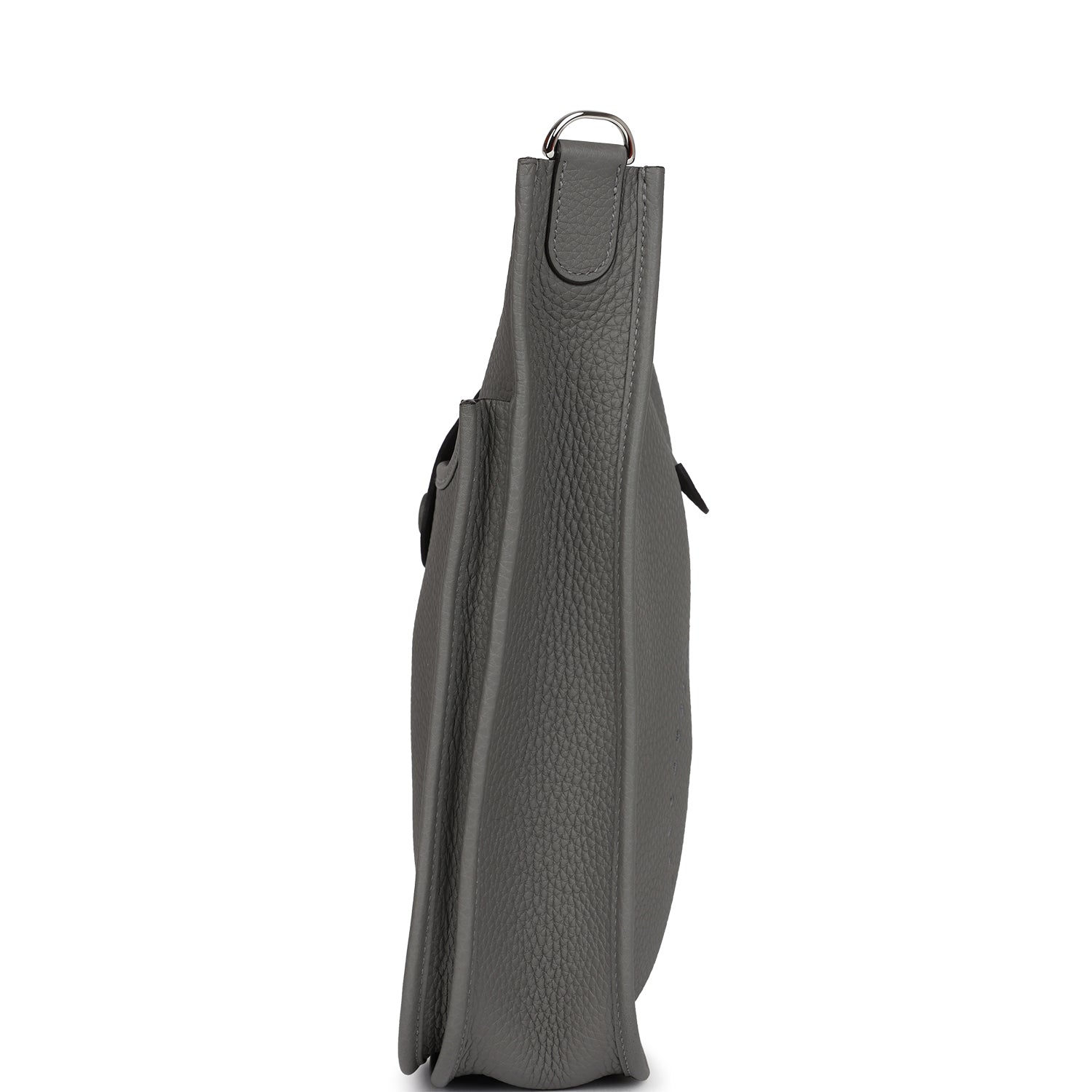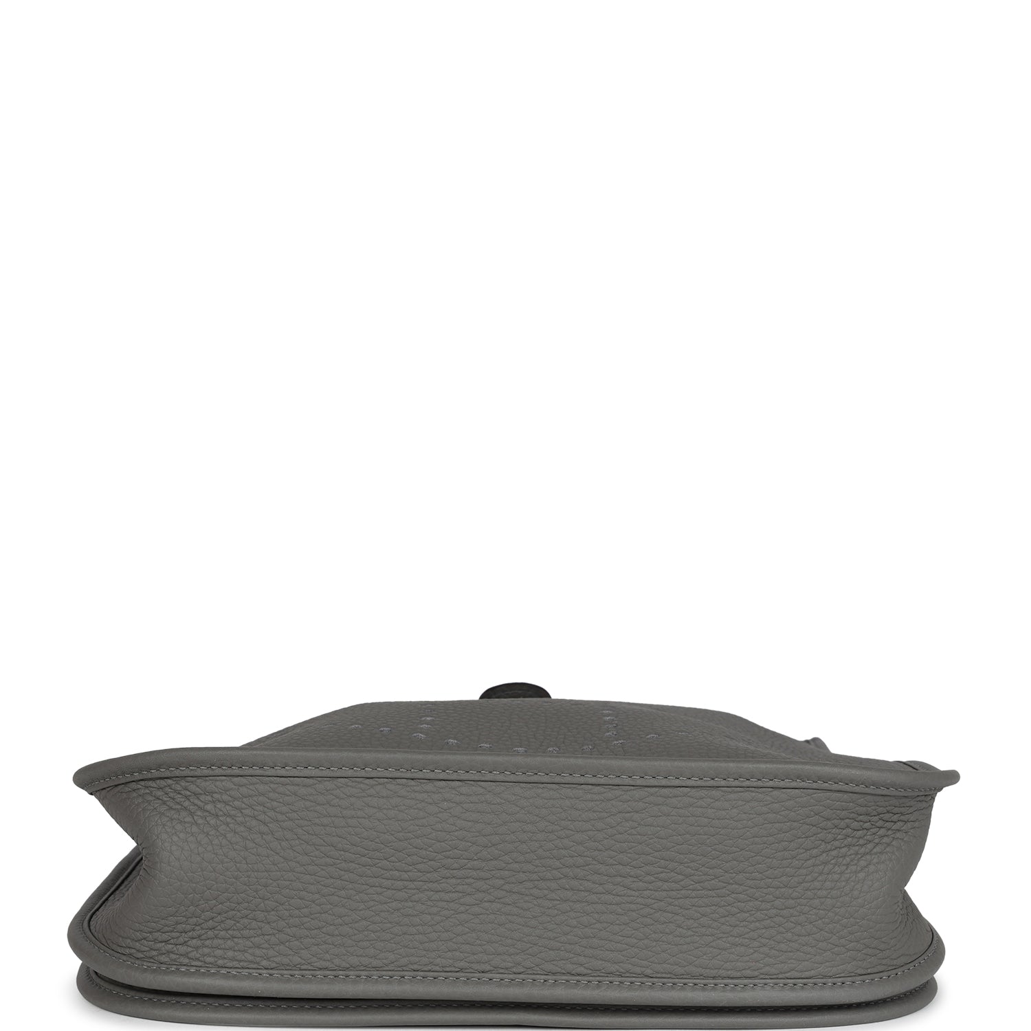 This Evelyne is in Gris Meyer clemence leather with palladium hardware and has tonal stitching, pull tab top closure and Gris Meyer removable canvas and leather shoulder/crossbody strap.