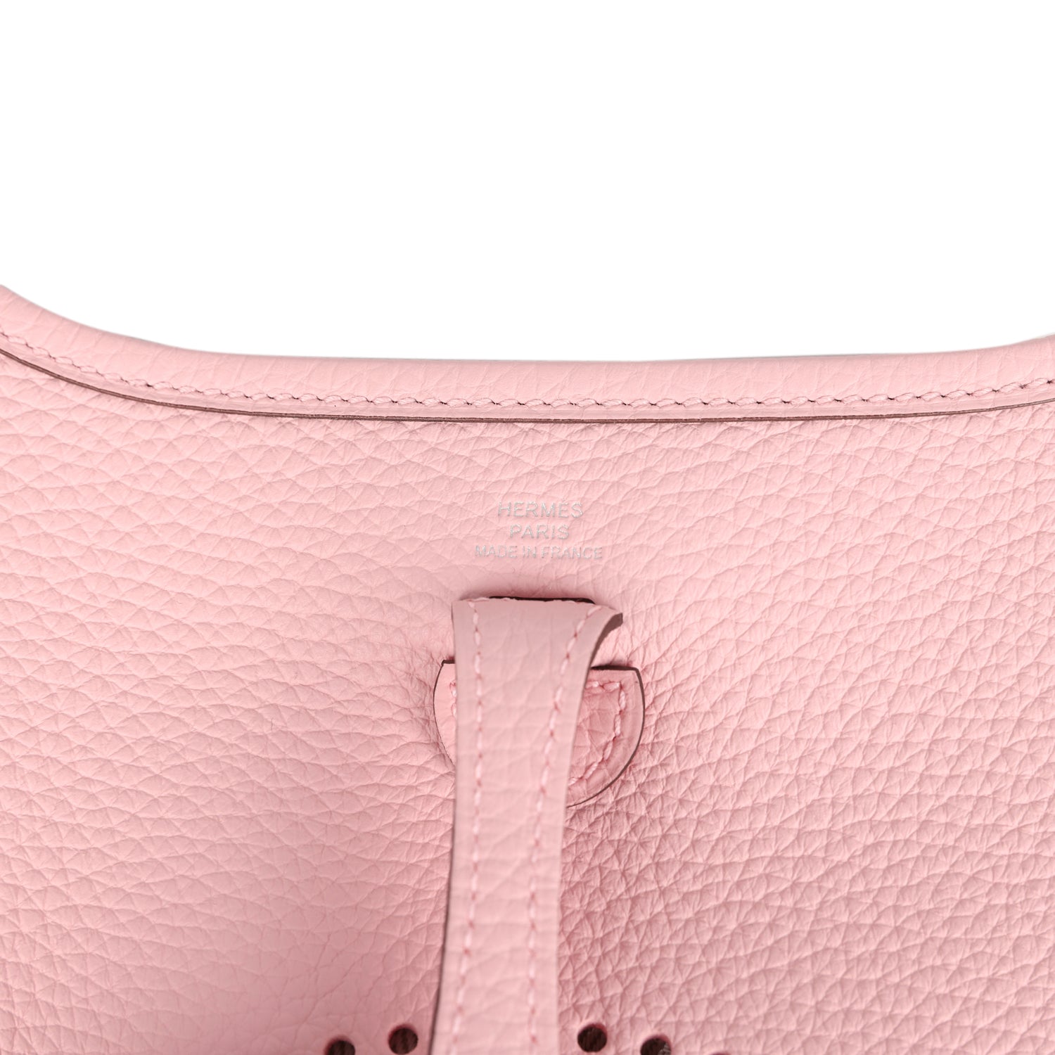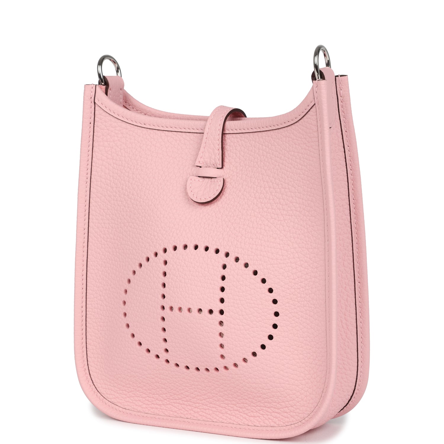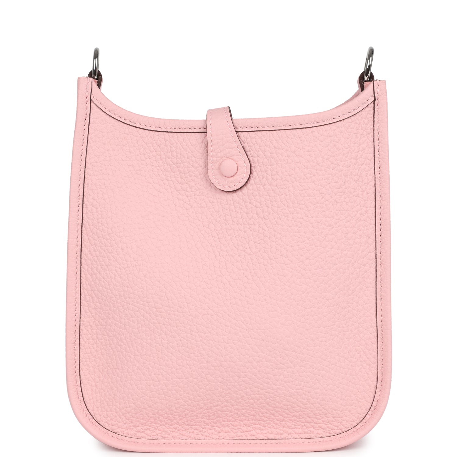 This Evelyne TPM is in Rose Sakura clemence leather with palladium hardware and features tonal stitching stitching, pull tab top closure and a removable canvas and leather shoulder/crossbody strap.