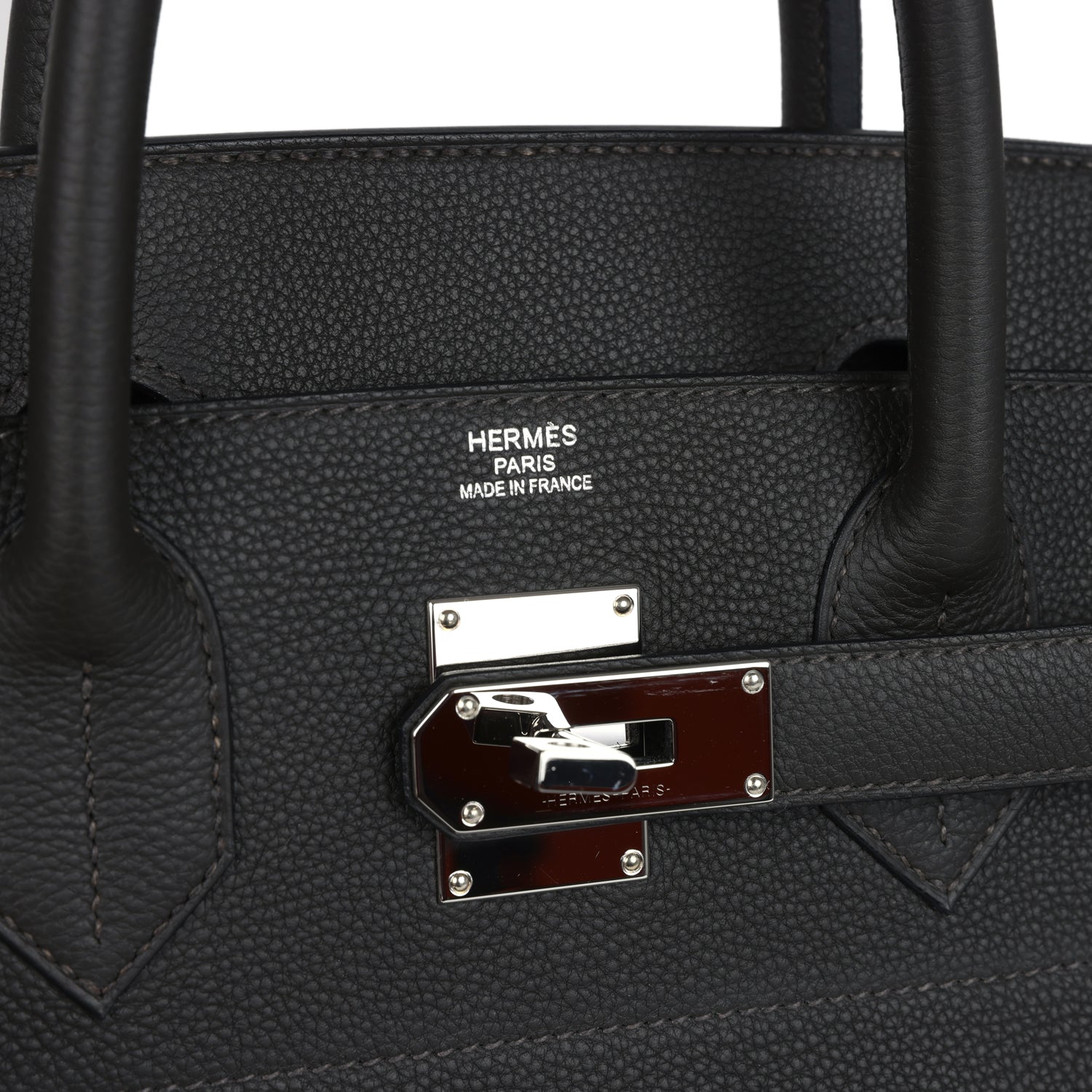 This HAC Birkin is in Vert Bronze togo leather with palladium hardware and has tonal stitching, two straps with HAC toggle closure, clochette with lock and two keys and double rolled handles.