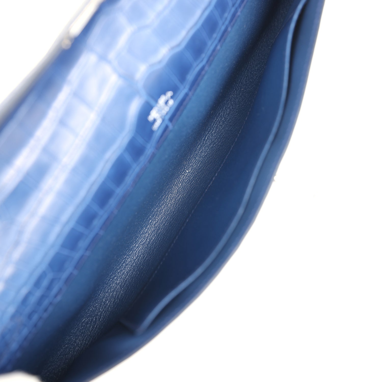 Hermes Kelly Cut Bleu De Malte Matte Porosus Crocodile Palladium Hardware