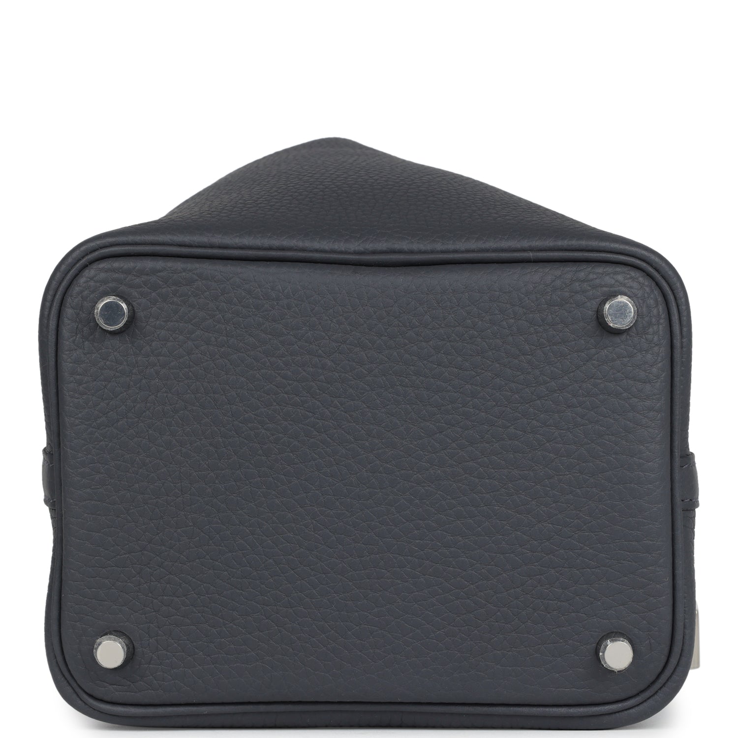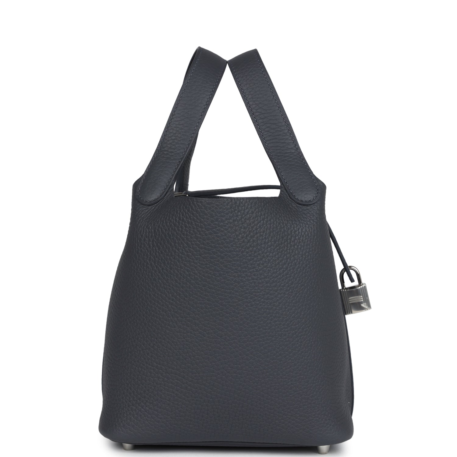 This Picotin is in Ardoise clemence leather with palladium hardware and has tonal stitching with two top handles, lock and two keys.