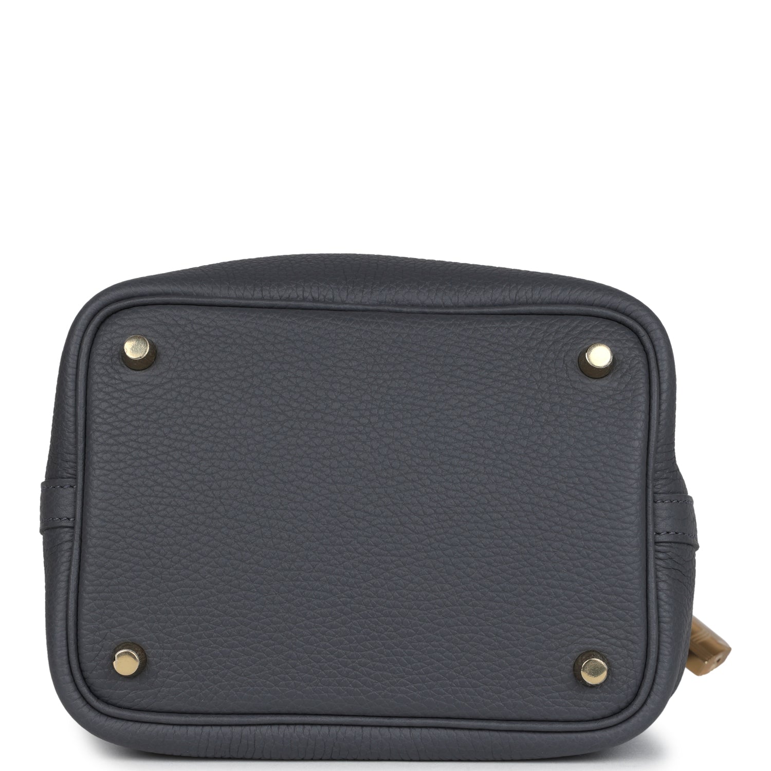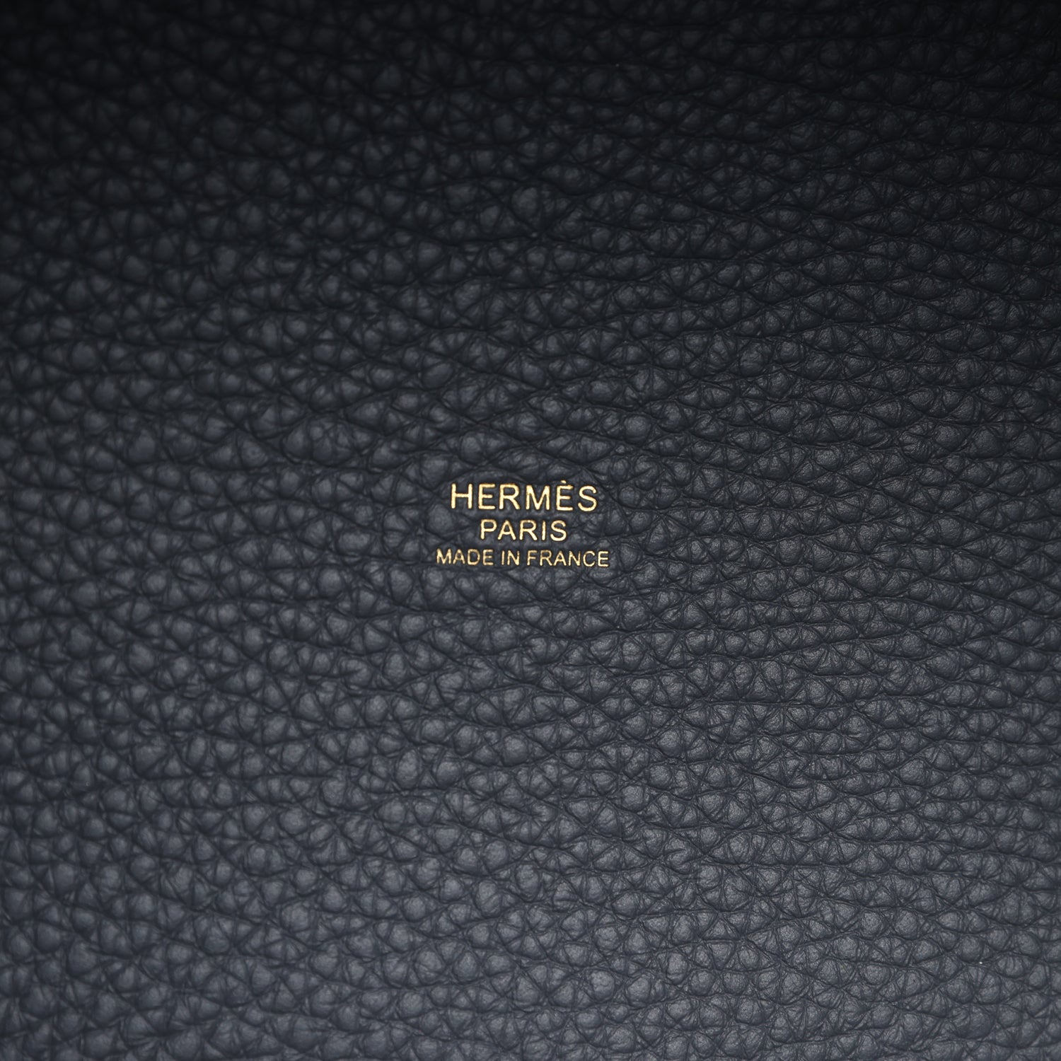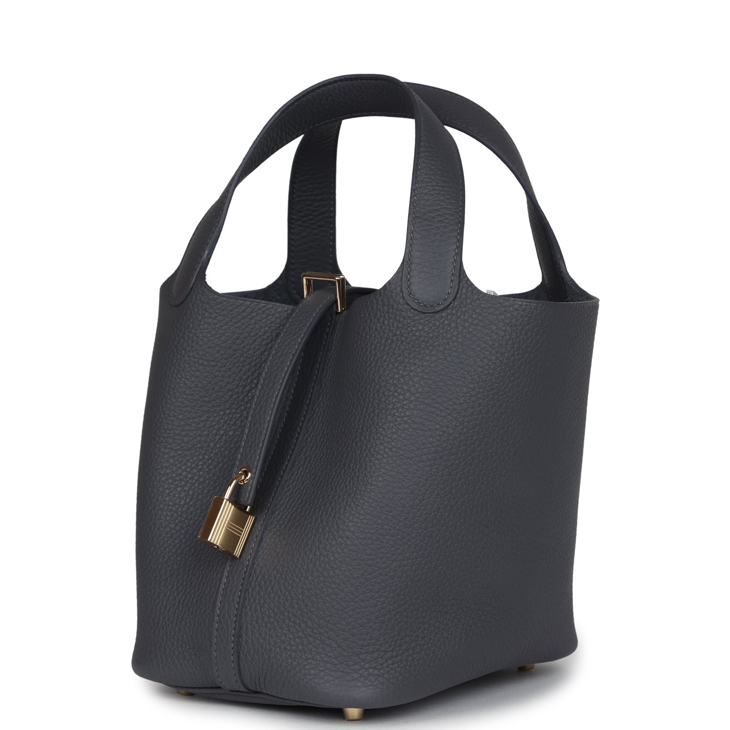 This Picotin is in Ardoise clemence leather with permabrass hardware and has tonal stitching with two top handles, lock and two keys.