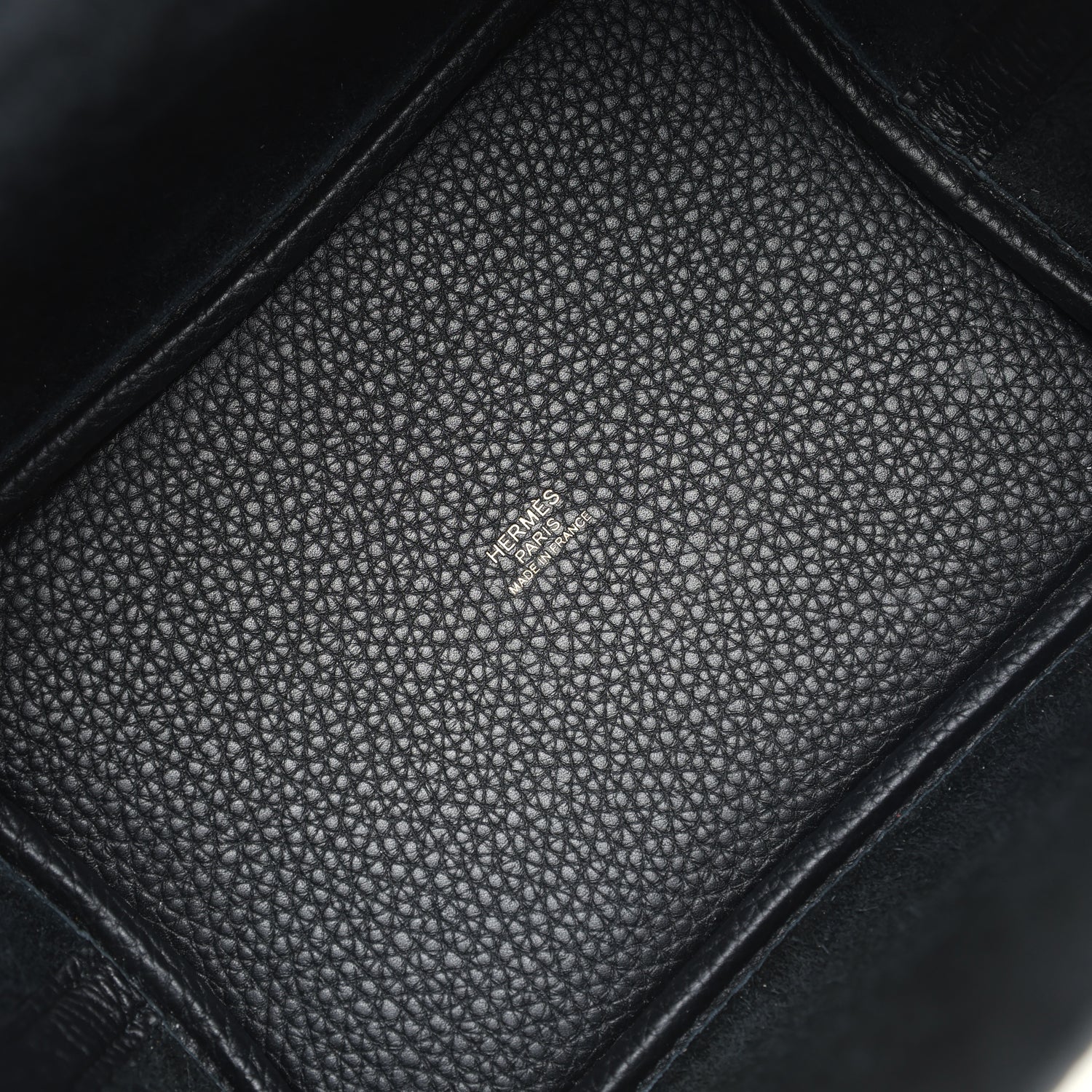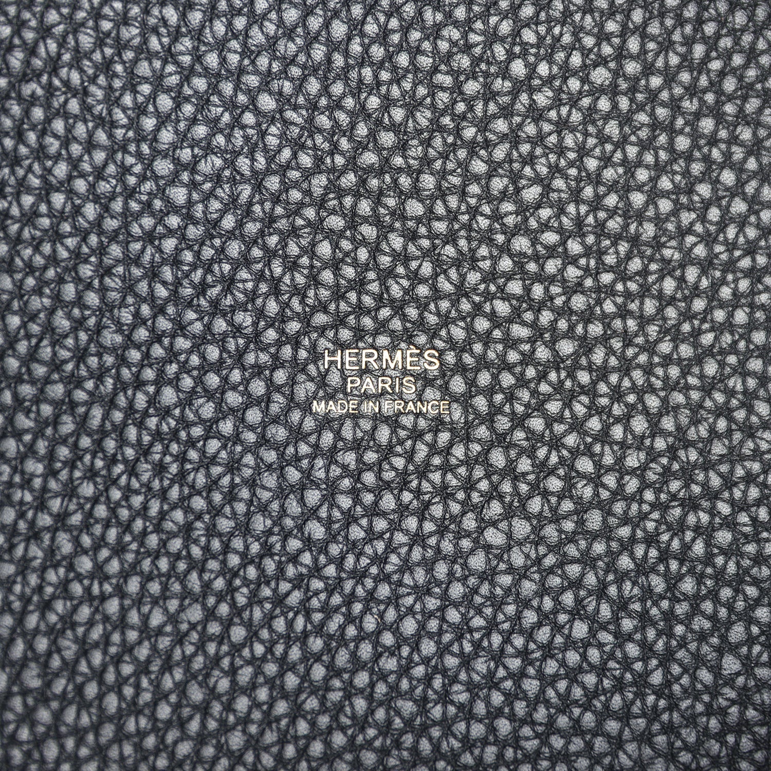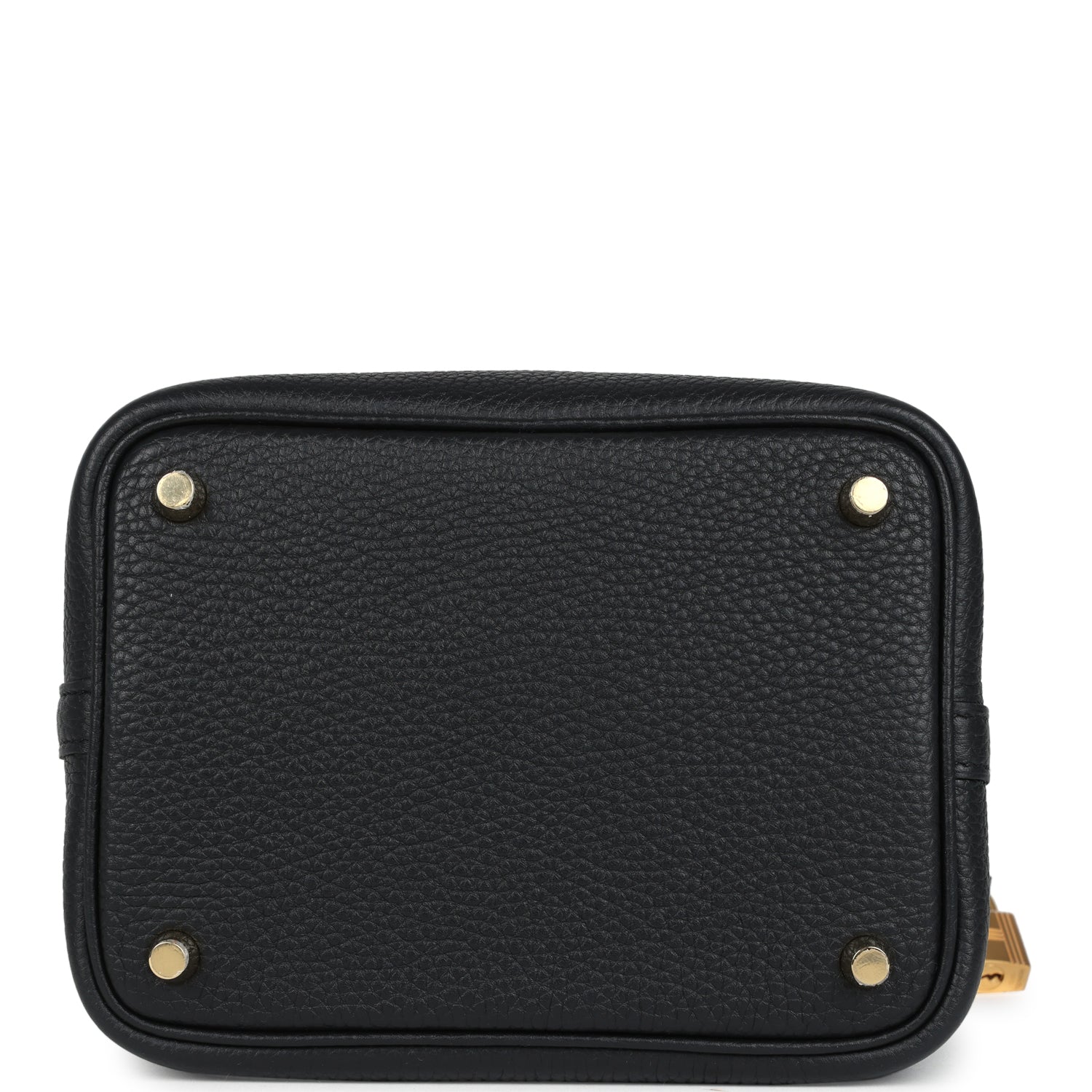 This Picotin Lock is in Black clemence leather with gold hardware and has tonal stitching with two top handles.