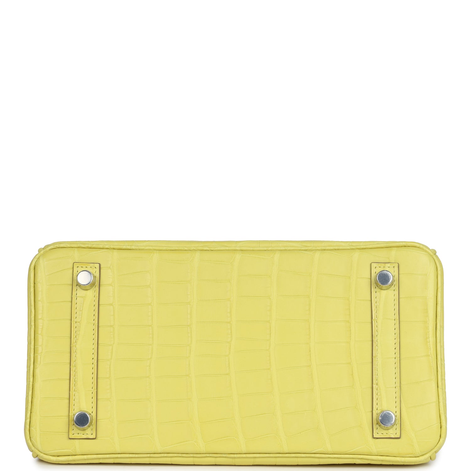 This Birkin is in Lime Mississippiensis Matte Alligator leather with palladium hardware, has tonal stitching, front flap, two straps with center toggle closure, clochette with lock and two keys, and double rolled handles.